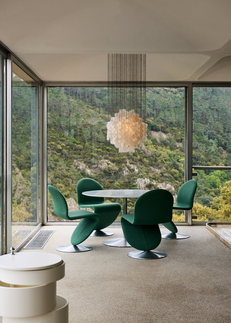 Ægget, Christianshavn stof, drejelig inkl. skammel af Arne Jacobsen