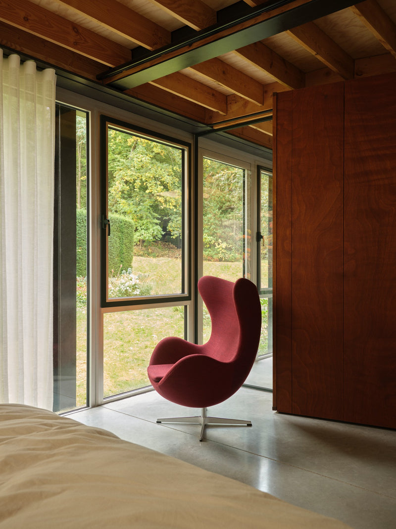 Ægget, Valnød Essensial læder, uden returdrej inkl. skammel af Arne Jacobsen