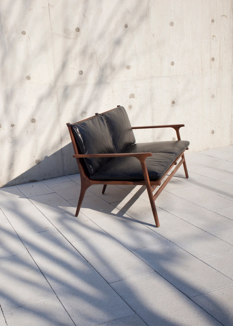 Rén Lounge sofa 2. pers sortmalet eg, sort læder fra Stellar Works