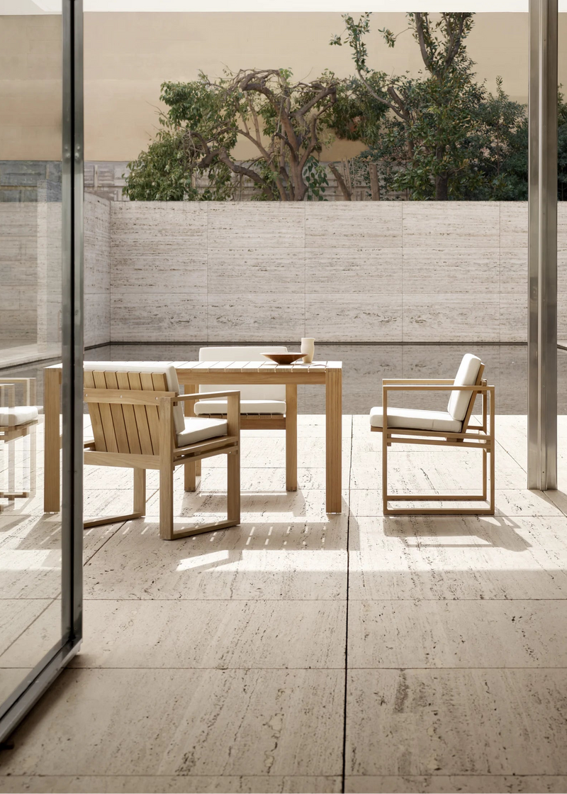 Bodil Kjær havemøbelsæt i teak med 1 havebord og 4 havestole inkl. hynder fra Carl Hansen & Søn
