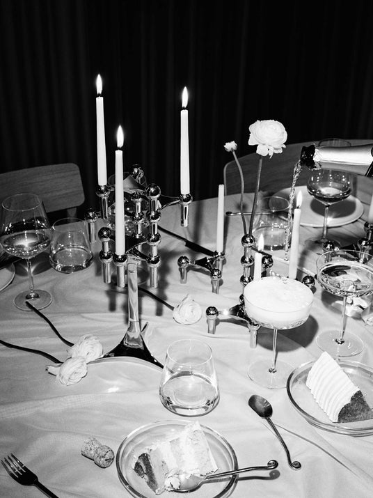Få nytårsbordet til at skinne med store lysestager med elegante lange lys i, glitrende glas til den mousserende champagne og det fine sølvbestik. Pift bordet op med et par klassiske nytårsknallerter, en lyskæde og fine hørservietter med servietringe.For at fuldende det festlige nytårsbord, kan du tilføje elegante detaljer, der virkelig får bordet til at stråle. Placer store lysestager med lange, elegante lys, som kan skabe en varm og indbydende atmosfære. De glitrende glas er perfekte til at skåle i mousserende champagne, og det fine sølvbestik tilføjer et touch af luksus. Klassiske nytårsknallerter og en dekorativ lyskæde giver et festligt pift, mens fine hørservietter med servietringe fuldender looket med en stilfuld finesse.Når du arrangerer dit nytårsbord, er hver detalje vigtig for at skabe den rette stemning. Ud over de store lysestager og glitrende glas, overvej også at integrere elementer som små dekorative figurer eller tematiske ornamenter, der reflekterer nytårets fest og fornyelse. En elegant bordløber eller et centralt blomsterarrangement kan også tilføje farve og tekstur, hvilket yderligere forstærker bordets festlige udtryk. Husk, balance i dekorationen er nøglen til et smukt og indbydende nytårsbord.