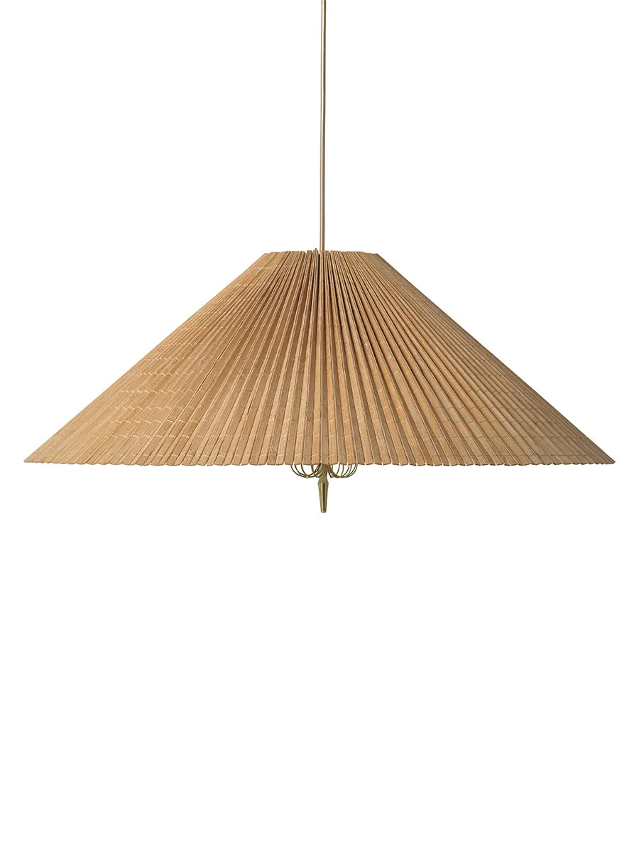 I løbet af 2023 vil GUBI hædre den finske designer, Paavo Tynell, som især var kendt for sine lamper. GUBI lancerer 7 mesterværker af designeren i løbet af 2023, og denne er én af dem. 1972 pendlen er en klassiker i håndsyede bambuslameller af den finske designer Paavo Tynell. Lampen har en nærmest arkitektonisk skikkelse med sin simple skærm med messingdetaljer i midten. Bambusskærmen giver et blødt lys der er behageligt at se på.