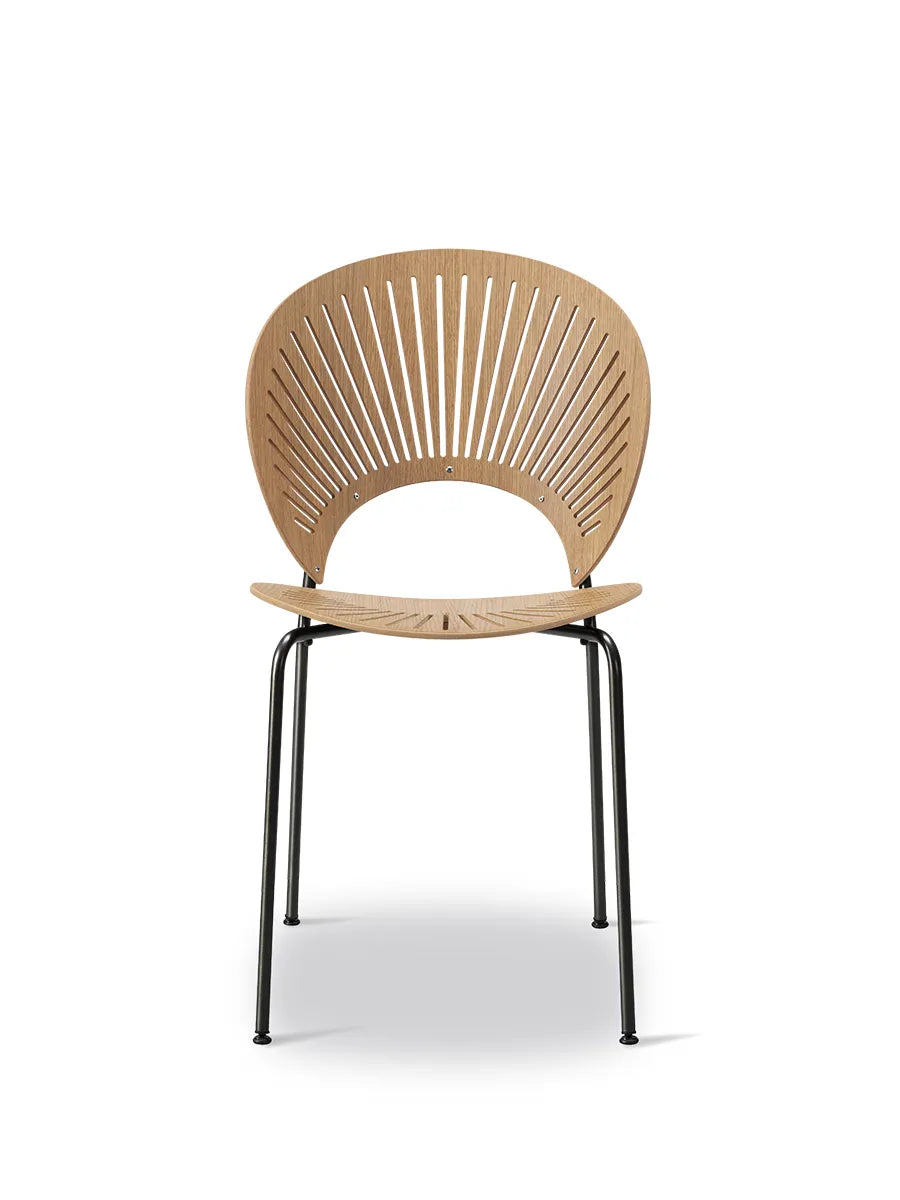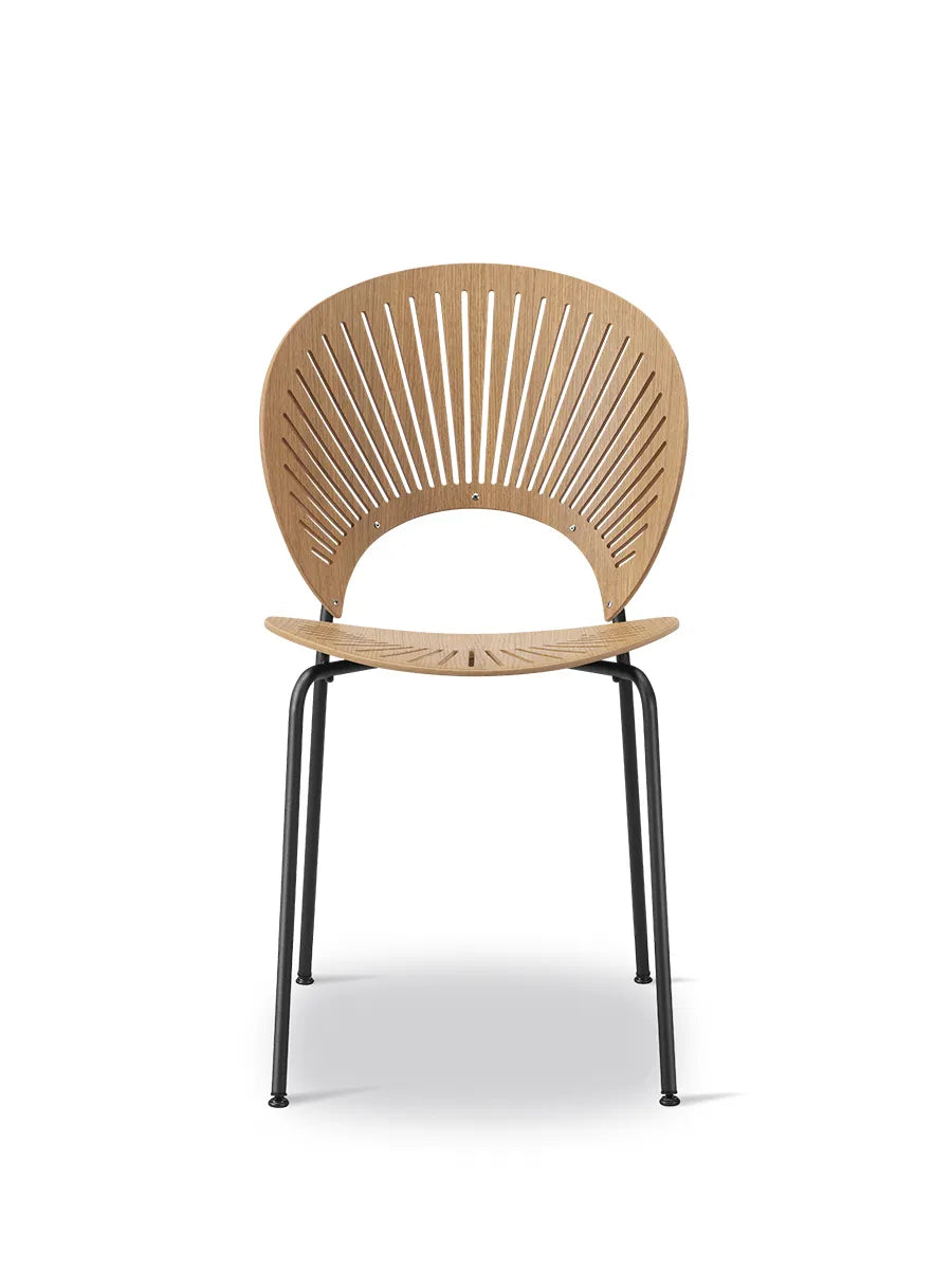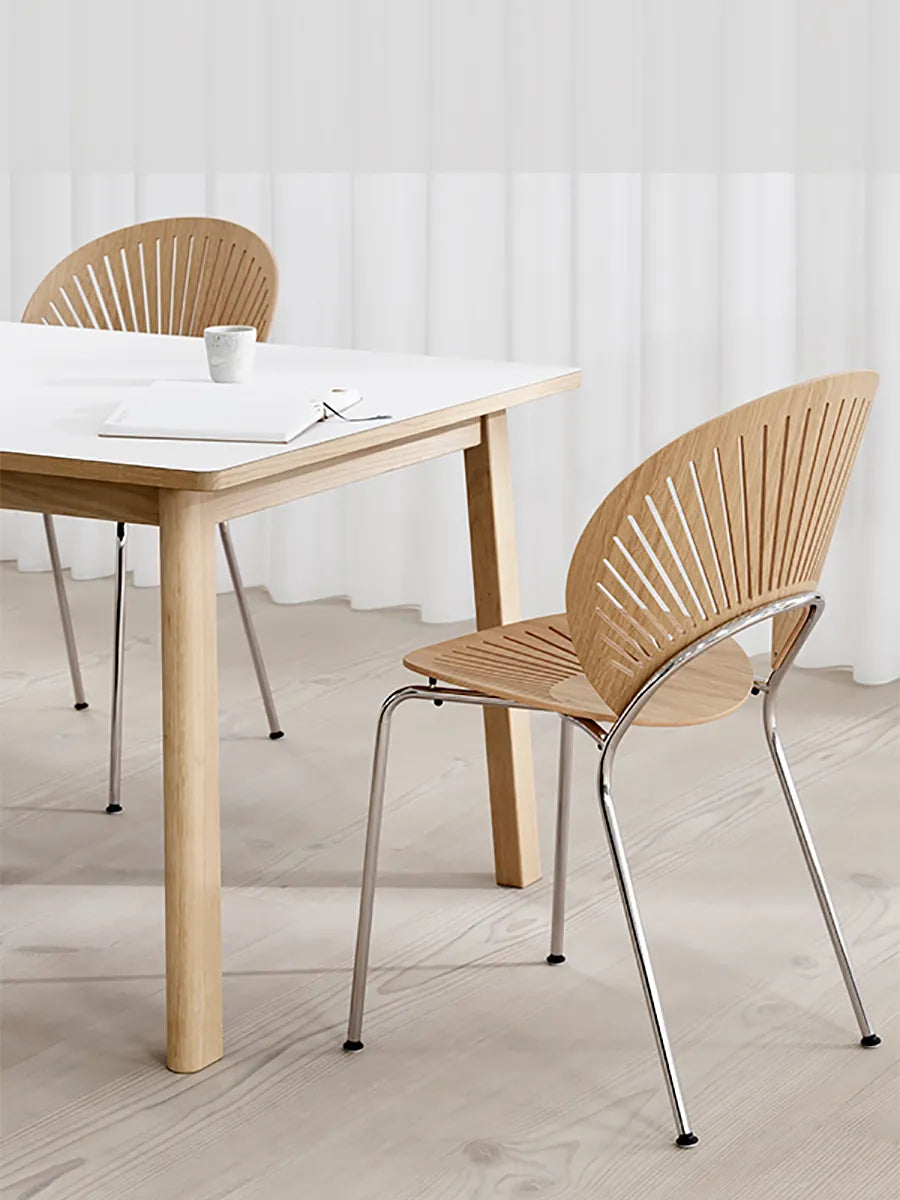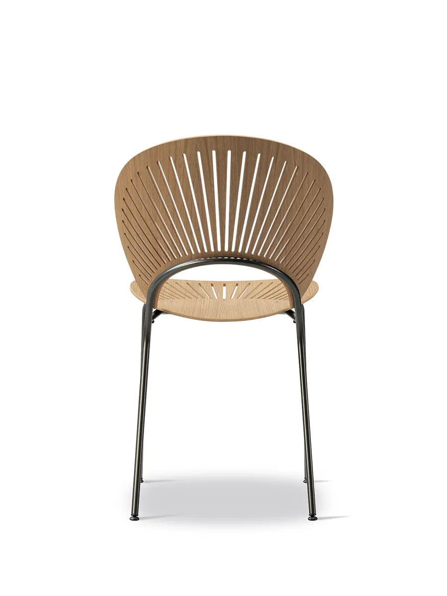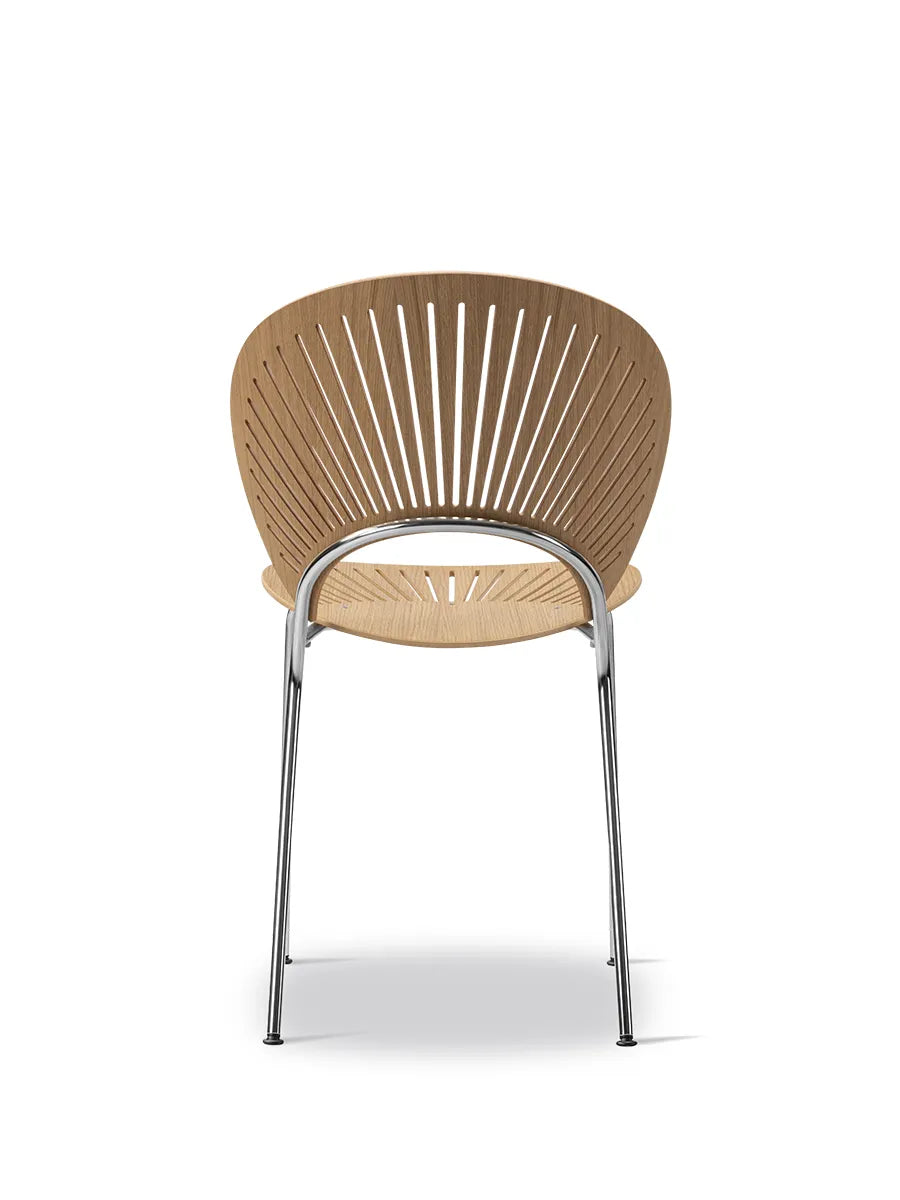 Den gennembrudte finer gør, at Trinidad-stolen næsten opløses i et spil af lys og skygge. Samtidig har stolen en iøjnefaldende og skulpturel karakter. Denne version uden arme kan stables.