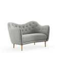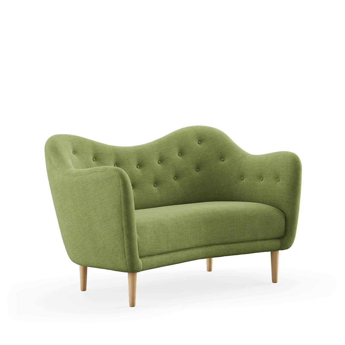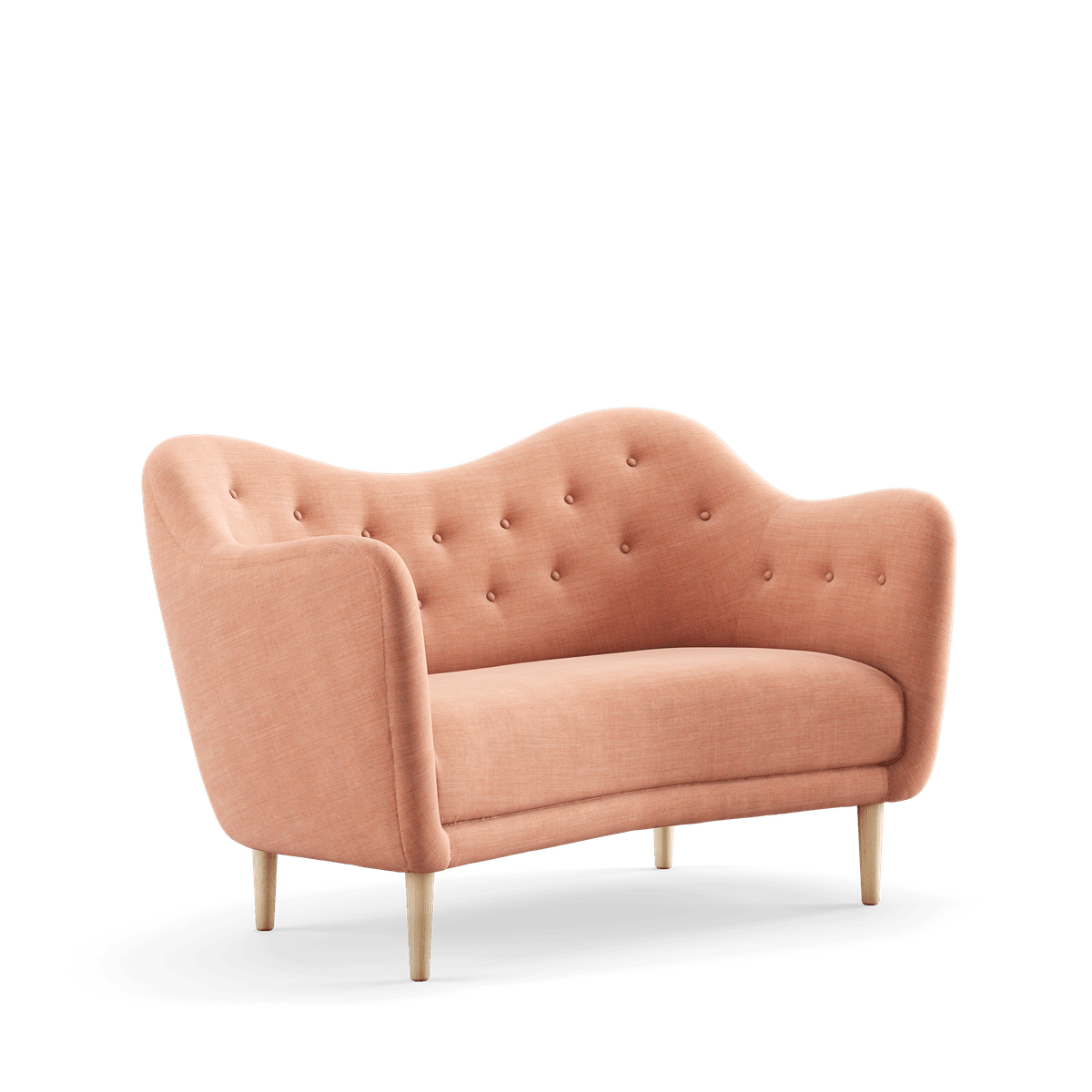 46 Sofaen af Finn Juhl er et studie i skulpturel lethed og bløde, organiske linjer. Den frit svævende top hviler elegant på et håndforarbejdet træstel, der giver sofaen et nærmest møbelsnedkeragtigt udtryk. I denne variant står stellet i egetræ med klar olie med en varm glød, som fremhæver åretegningen og tilfører stuen en naturlig ro. Komforten er generøs og imødekommende, mens proportionerne er raffinerede og lette i rummet. Produceret af House of Finn Juhl efter originale tegninger med tidløse materialer og omhyggelig finish. Polstringen udføres efter ønske, så udtryk og taktilitet kan tilpasses dit hjem.
