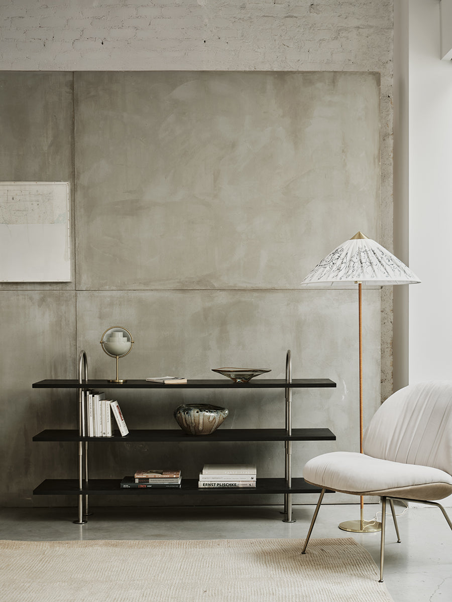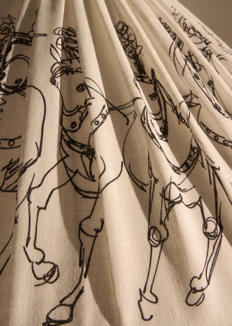 GUBI’s ikoniske 9602 gulvlampe er designet af Paavo Tynell. Lampen er kendetegnet ved sin brede, koniske skærm og den elegante rattanomviklede stang, her smukt afbalanceret af en poleret messingbase for et tidløst udtryk. I denne Garro Éditions specialudgave er skærmen med Henry Moores 'Haringey Circus Horses', som tilfører skulpturel dybde og et levende spil i foldene. Gulvlampen skaber et blidt og varmt lys. Perfekt som læselampe ved sofaen eller som skulpturel belysning i stuen, soveværelset eller entréen.