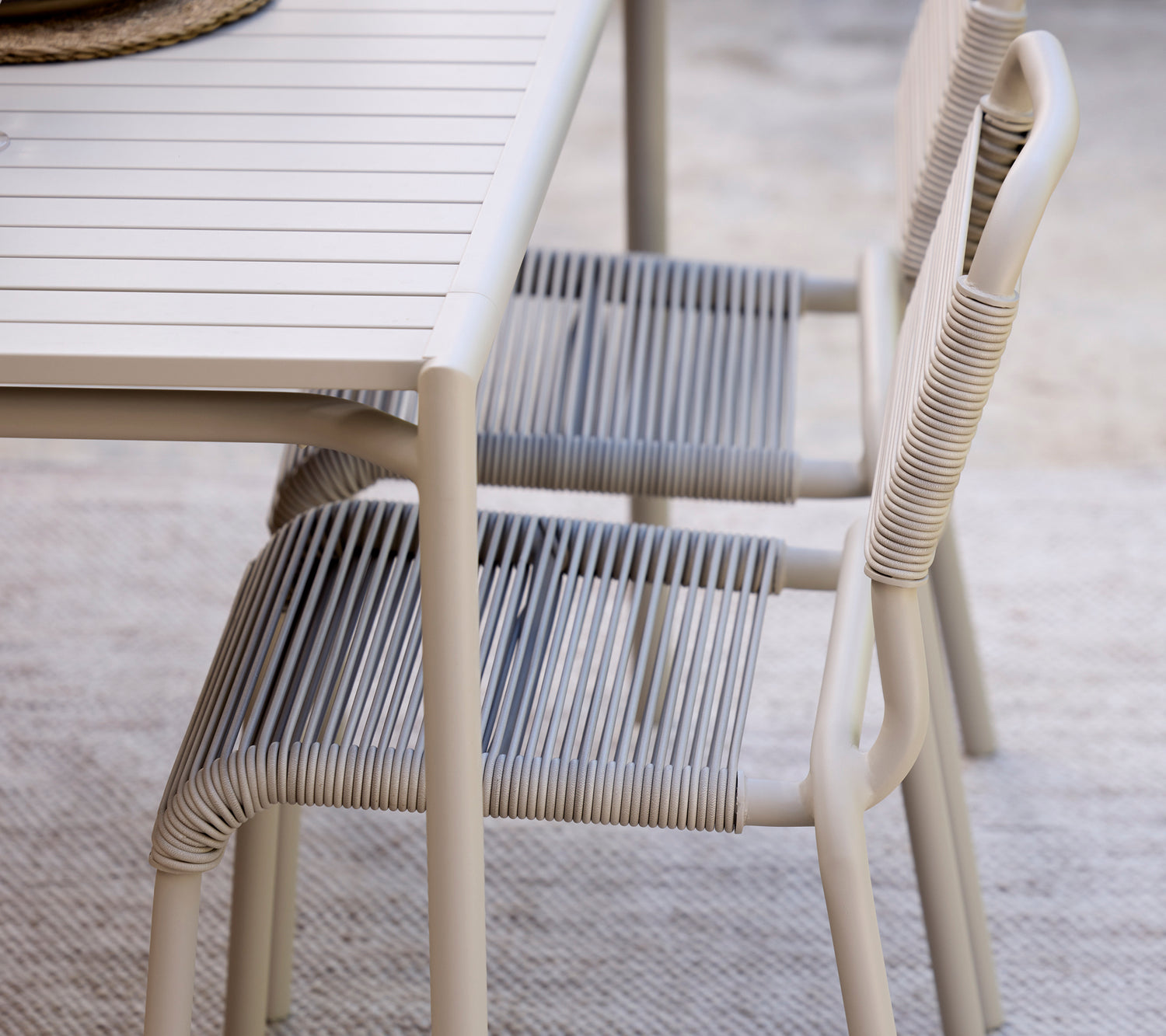 Al Dente havestolen fra Cane-line Design forener lethed og komfort i en stol, der er skabt til moderne uderum. De slanke, spaghetti-inspirerede strenge er håndflettet til et transparent sæde og ryglæn, som giver en behagelig støtte og et luftigt udtryk omkring spisebordet på terrassen, altanen eller i café- og restaurantmiljøer. Det fine flet hviler på en stærk, pulverlakeret aluminiumsramme, der sikrer høj holdbarhed og minimal vedligeholdelse. Den slanke silhuet gør stolen nem at placere, og når sæsonen skifter, kan den stables for pladsbesparende opbevaring.