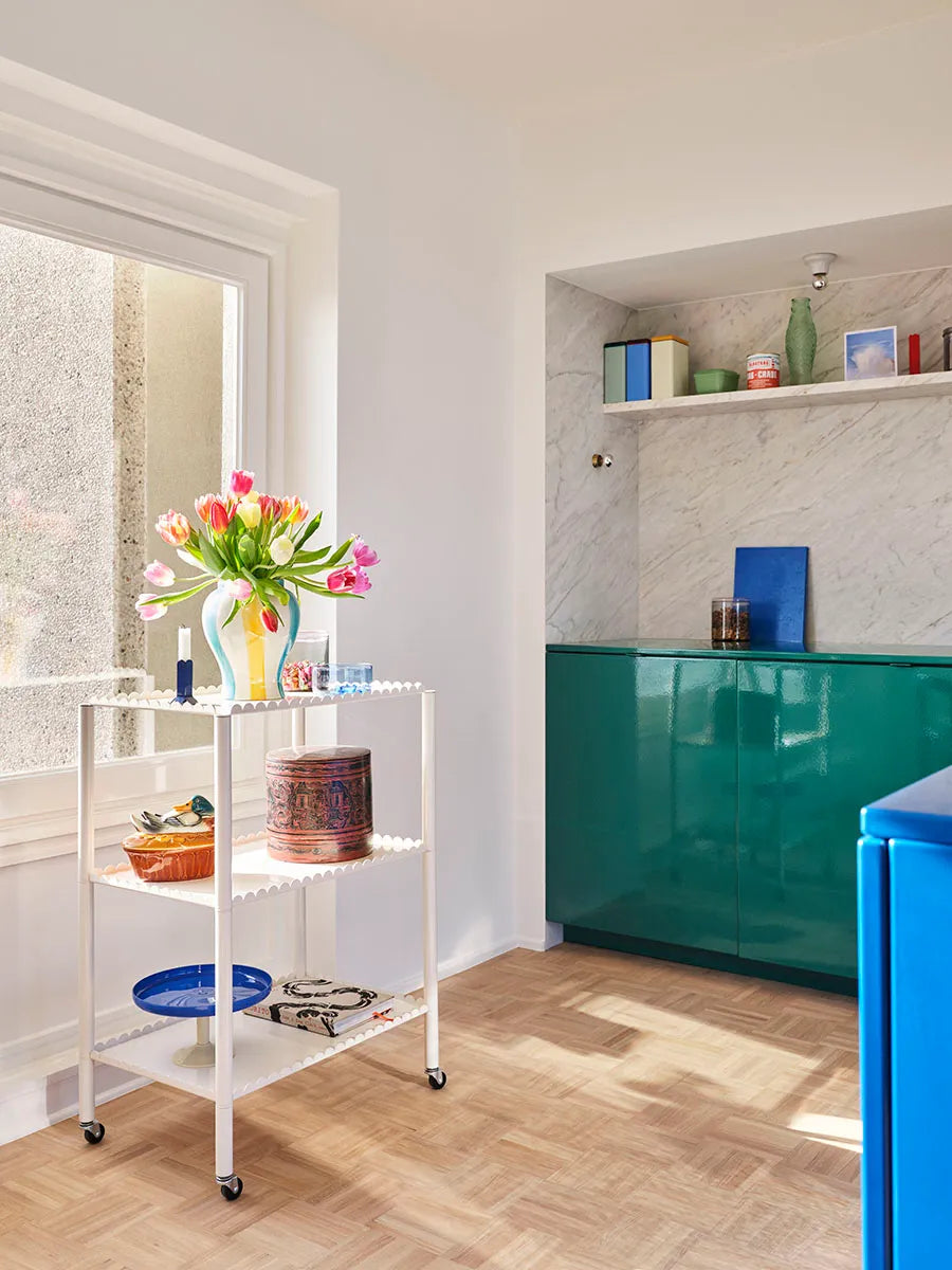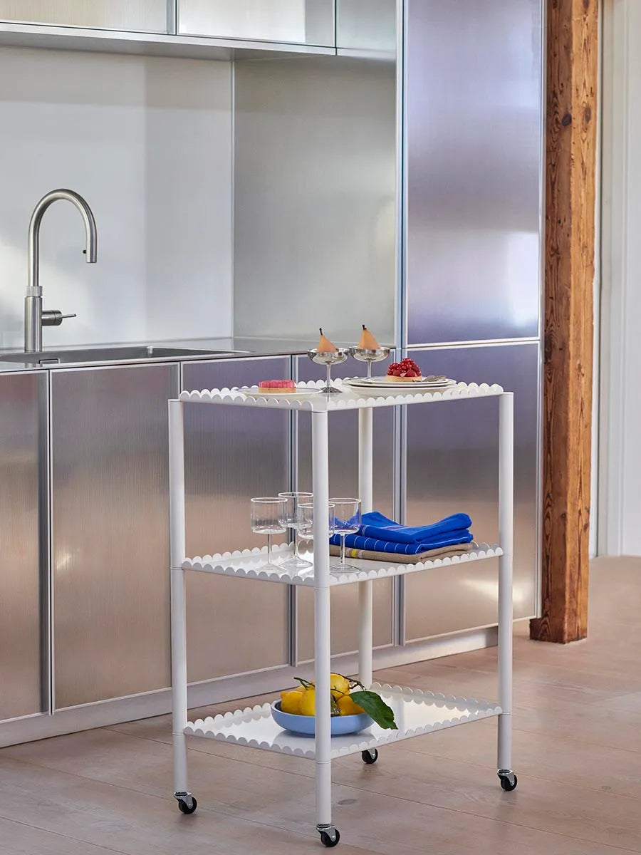 Arcs Trolley er designet af den belgiske designduo Muller Van Severen. Trolleyen er designet ligesom resten af Arcs serien med små halve "bobler" i kanten. Den fine trolley er et friskt pust i indretningen.
