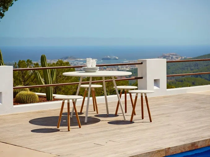 Area bord fra Cane-line er et elegant rundt aluminiumsbord med en diameter på 110 cm. Bordet er på grund af sin konstruktion let, og passer godt ind de fleste steder. Bordet er designet af den danske design duo Gudmundur Ludvik & Hee Welling.