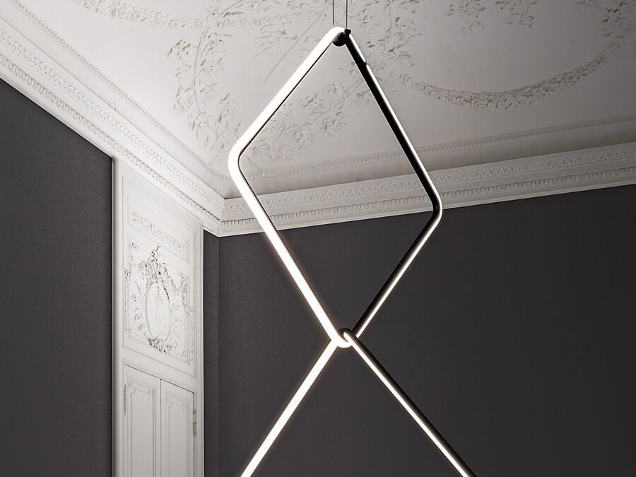 Arrangements 1, Square Large inkl. baldakin fra Flos er lys sat på form, ro og arkitektonisk præcision. Designet af Michael Anastassiades balancerer mellem smykke og lysskulptur, hvor den rene kvadratiske geometri svæver let i rummet og skaber en eksklusiv, blød og behagelig belysning. Den indbyggede LED ligger skjult i profilen og giver et ensartet diffust lys, der er smukt over spisebordet, i stuen eller i et højloftet rum, hvor lampen får lov at tegne sin grafiske silhuet mod omgivelserne.