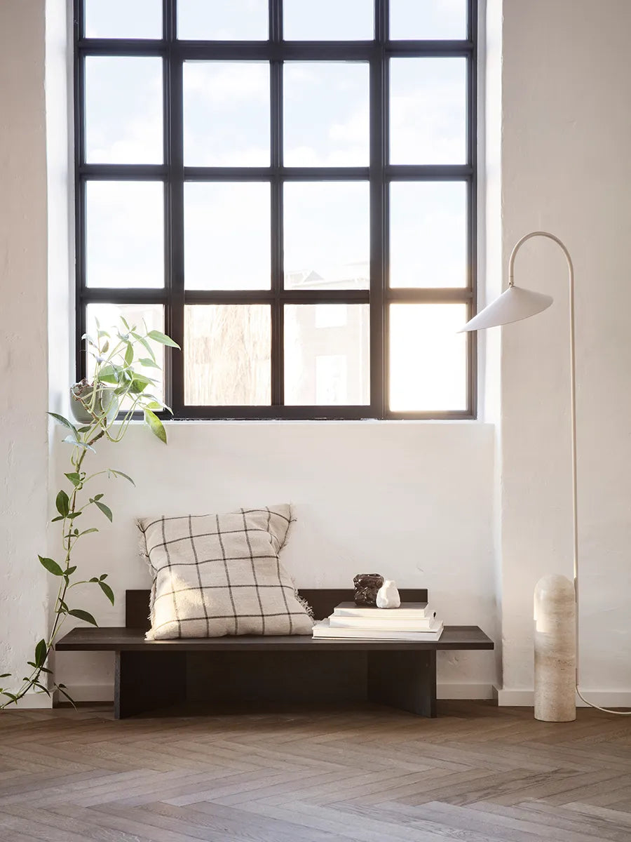 Arum gulvlampen fra Ferm Living, er karakteriseret ved sin fod af marmor kombineret med den organisk udformede lampeskærm. For at opnå den perfekte balance i lampens decentrerede struktur, står marmorfoden som modvægt til den blide måde, hvorpå lampeskærmen hænger fra den bøjede metalstang. Med en mat, cremefarvet inderside af skærmen, giver lampen et blødt og jævnt fordelt lys, og lampeskærmen kan justeres, så du får optimale lysforhold i alle situationer.
