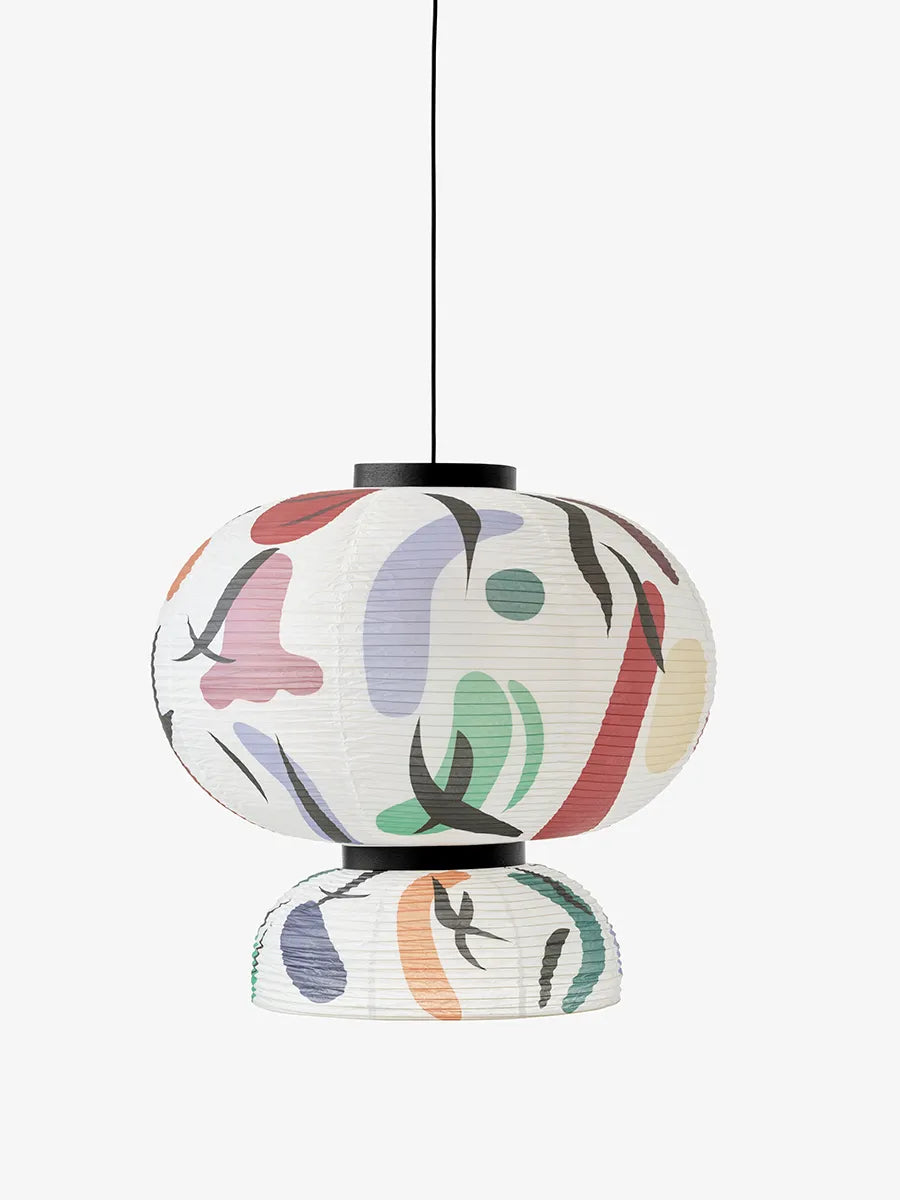 Limited Edition Den populære rispapirslampe Formakami er designet af den verdenskendte kunstner og designer Jaime Hayon. Nu har Jaime Hayon designet en limited edition af lampen, som har tage inspiration fra japanske håndmalede rispapirslamper. De smukke farver og mønstre giver lampen et særligt udtryk og gør den mere legende at se på. Brug den store lampe over spisebordet eller i et hjørne i stuen. Lampen er produceret i 1000 stk. og fås kun hos udvalgte forhandlere.