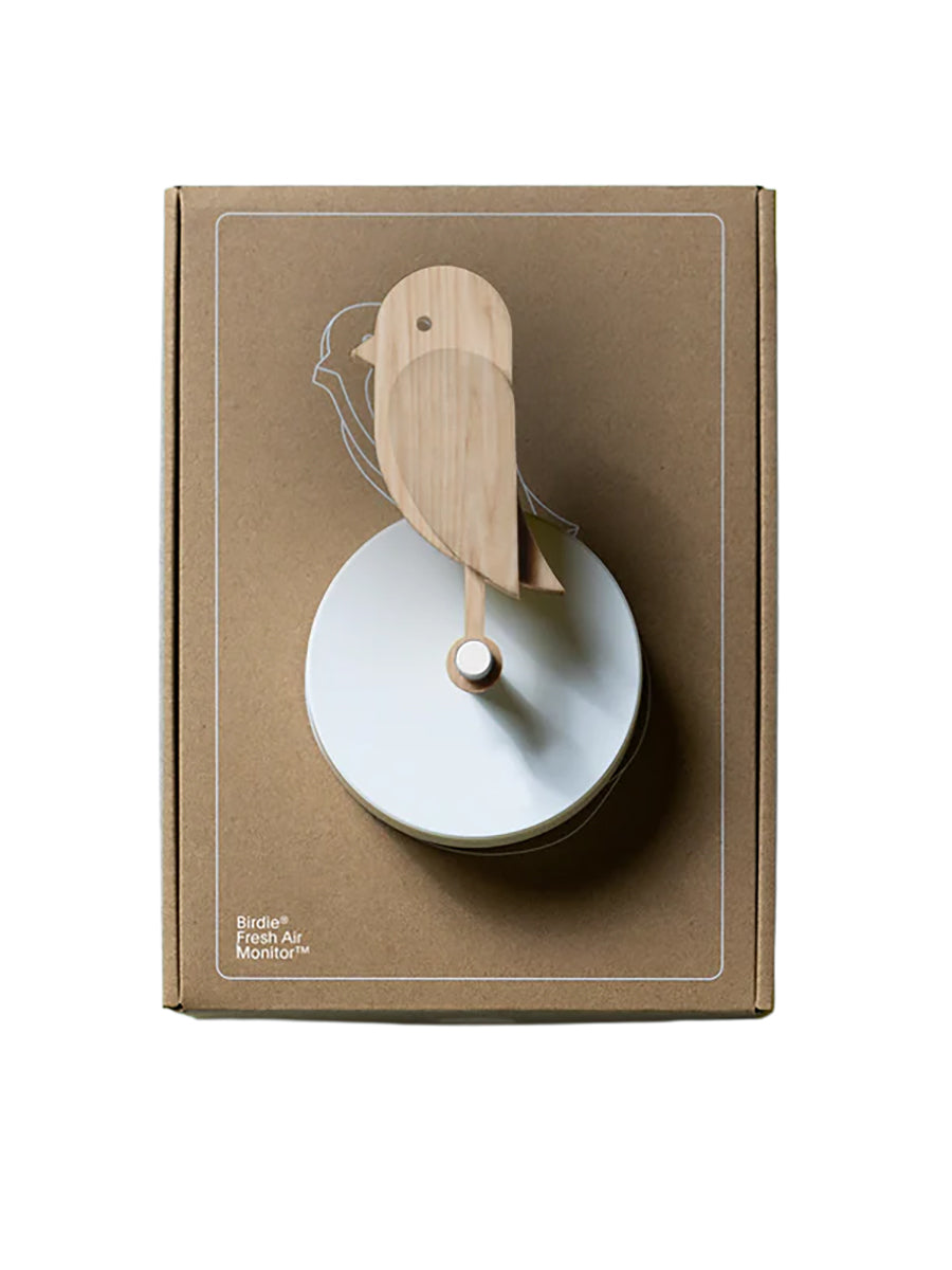 Birdie 2.0 i eg er den legende og intuitive indeklimamåler, der får hele familien til at lufte ud oftere. Den lille fugl tipper venligt ned, når CO2-niveauet bliver for højt, og rejser sig igen, når luften er frisk. Den prisvindende løsning forener dansk design og schweizisk sensorteknologi og skaber en tydelig hverdagspåmindelse uden app lys eller lyde. Wood Edition lader fuglen træde frem i smukt FSC certificeret egetræ, mens den kompakte base i genanvendt plast gør installationen enkel i alle hjem. En opladning rækker i lang tid og dækker effektivt hverdagsbehovet i stue soveværelse eller hjemmekontor.