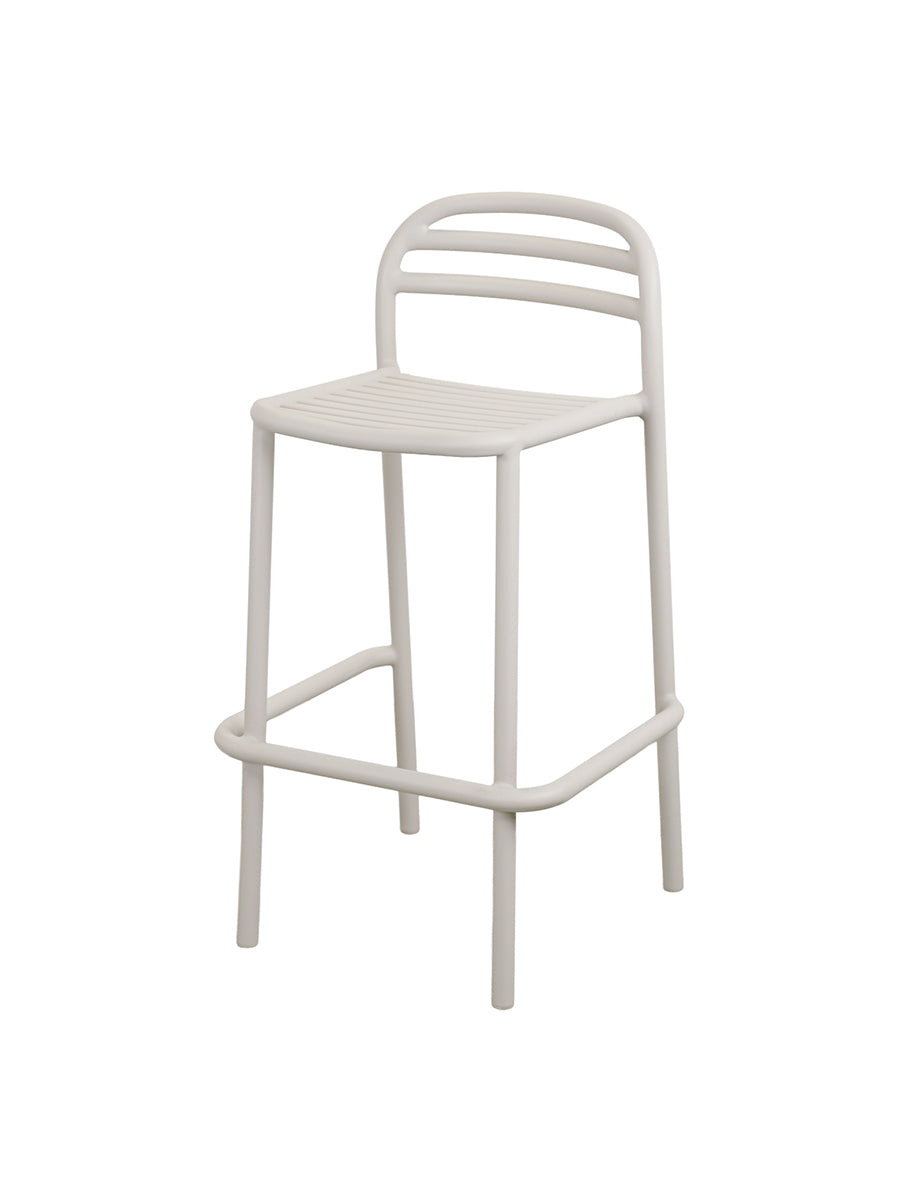 Bliss udendørs barstol fra Cane-line, designet af Foersom & Hiort-Lorenzen MDD, løfter barområdet med et stille, sofistikeret udtryk og en let, moderne silhuet. Den slanke profil i pulverlakeret aluminium giver en balanceret kombination af høj styrke og minimal vedligeholdelse, så stolen både tåler hverdagen hjemme og den intensive brug i professionelle miljøer. Den forhøjede siddeposition skaber en naturlig ergonomi ved barbord, køkkenø eller cafédisk, mens den integrerede fodstøtte inviterer til afslappede stunder med god støtte. Det stabelbare design gør det nemt og enkelt at opbevare flere barstole.