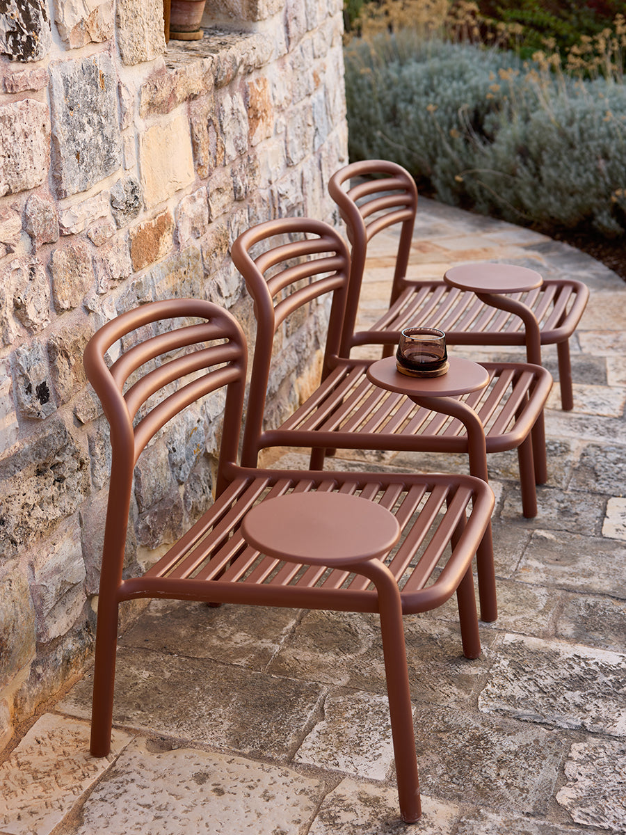 Bliss loungestolen med sidebord fra Cane-line samler komfort og funktion i et let, moderne udtryk. Den pulverlakerede aluminiumsramme kræver minimal vedligeholdelse, og det integrerede bord giver plads til en kop kaffe, en bog eller små dekorationer. Stolen passer både til private terrasser og professionelle loungeområder