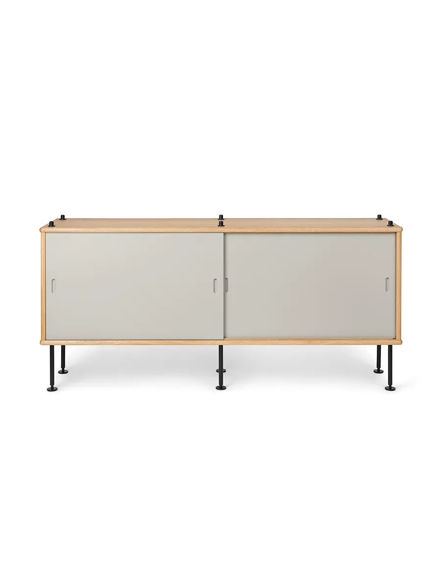 Denne opstilling indeholder: 1 x BM0253 Ben 20 cm. (6 stk.) 1 x BM0253 Skab 45 x150 cm. Inkl. et stangsæt 45 cm. (6 stk.), to skabshylder og forborede huller til placering. 2 x BM0253 Dør (fineret)