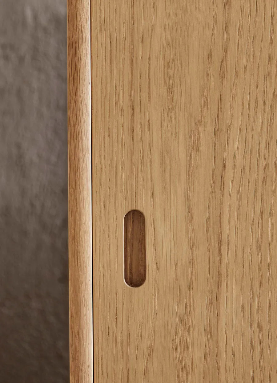 Døre i træ eller MDF: Dørene laves i eg/olie, eg/hvidolie, valnød/olie eller i lakeret MDF i farverne Black, Green, Red Brown, Blue eller Gray.