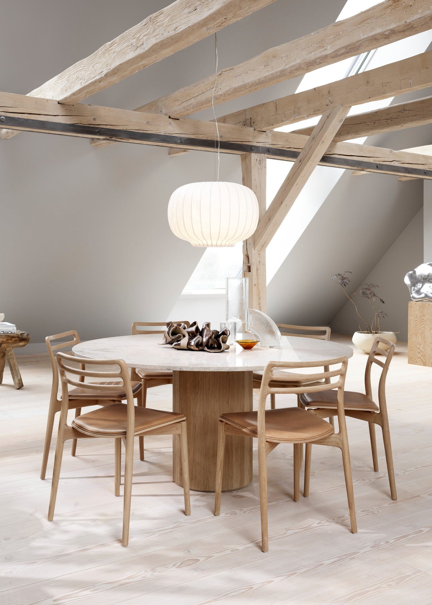 Cabin marmor spisebordet fra Vipp er det perfekte bord til den mellemstore spisestue eller køkkenplads.