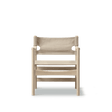 Canvas 21 forener klassisk elegance med afslappet ro. Tegnet af Børge Mogensen i 1968 og opbygget som en enkel, ærlig konstruktion, der tydeligt afspejler Mogensens præcise proportioner. Stolen er i FSC-certificeret massiv eg, sæbebehandlet for et lyst og naturligt udtryk, kombineret med naturfarvet canvas i sæde og ryg samt beslag i massiv messing – materialer, der udvikler en sofistikeret patina over tid. En alsidig loungeklassiker, hvis rene linjer harmonerer med ethvert rum.