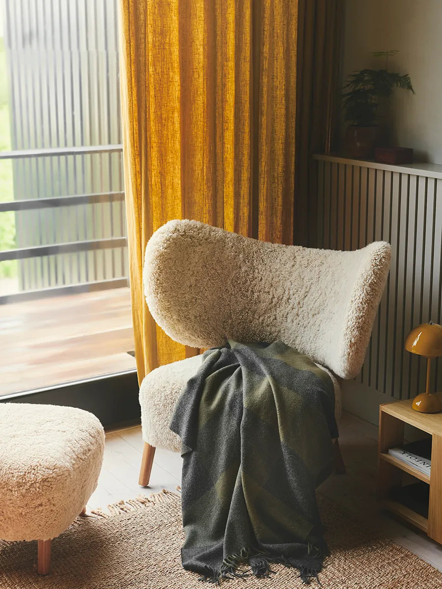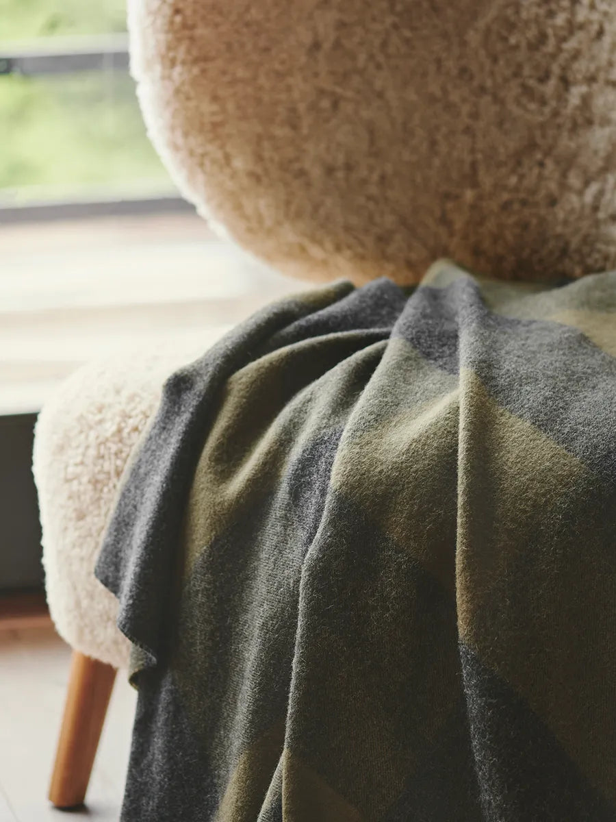 Smuk og lækker plaid i 100% baby alpaka uld. Plaiden har et flot mønster, der tager inspiration i 70'erne med store tern. Ulden er temperaturregulerende, og derfor er tæppet skønt at bruge året rundt. Kvaliteten på Silkeborg Uldspinderis tæpper er høj, og det mærkes tydeligt her. Tæppet er i en smuk mørk blå, også kaldet marina, sammen med en mørk grå.