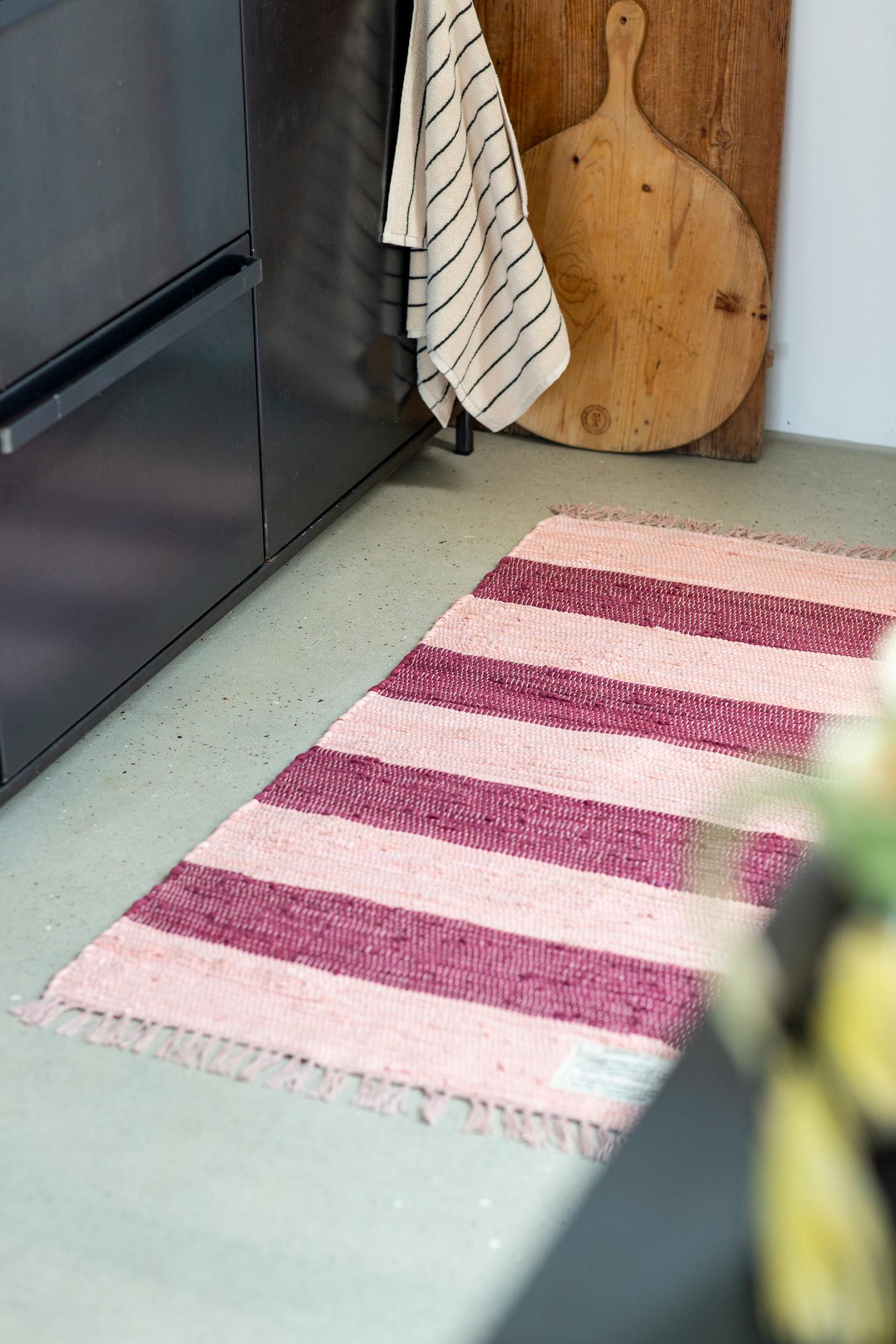 Chindi tæpperne kan maskinvaskes og fås i 8 farver. Du kan bruge dem overalt i huset: På badeværelset, foran indgangsdøren, i sommerhuset eller på børneværelset. Kvasterne matcher tæppets farve for at skabe et færdigt look.