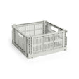 Giv orden og stil til dit hjem med Colour Crate Medium Square Grey fra HAY – en kvadratisk opbevaringskasse, der kombinerer nordisk æstetik og funktionalitet med bæredygtighed. Kassen er fremstillet af 100 % genanvendt post-consumer plastik, så du får både holdbarhed og et grønnere valg uden at gå på kompromis med designet. Takket være det perforerede design bliver luftcirkulation sikret, og den foldbare konstruktion gør den nem at opbevare, når den ikke er i brug. Med målene 29,5 × 29,5 × 15 cm passer den perfekt i køkkenskabe, hylder, entréen eller kontoret – brug den til alt fra legetøj og hobbyting til forråd eller tekstiler. Kombinér flere farver eller størrelser for at skabe et personligt, struktureret udtryk i din boligindretning.