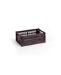 Colour Crate Small i farven Bordeaux fra HAY er en praktisk og stilfuld opbevaringskasse, der kombinerer funktionalitet med moderne design. Den kompakte størrelse gør den ideel til at organisere småting i hjemmet, på kontoret eller i køkkenet, mens den stærke plast og det luftige gitterlook giver både holdbarhed og et let udtryk. Brug den alene eller kombiner flere kasser for et personligt og fleksibelt opbevaringssystem.
