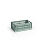 Colour Crate Small i farven Sage Green fra HAY er en praktisk og stilren opbevaringskasse, der kombinerer funktionalitet med et moderne design. Den kompakte størrelse gør den ideel til småting som kontorartikler, køkkenredskaber eller accessories, mens den friske grønne nuance tilføjer et dekorativt element i hjemmet. Kassen er fremstillet i robust plast og kan nemt stables eller foldes sammen, når den ikke er i brug.