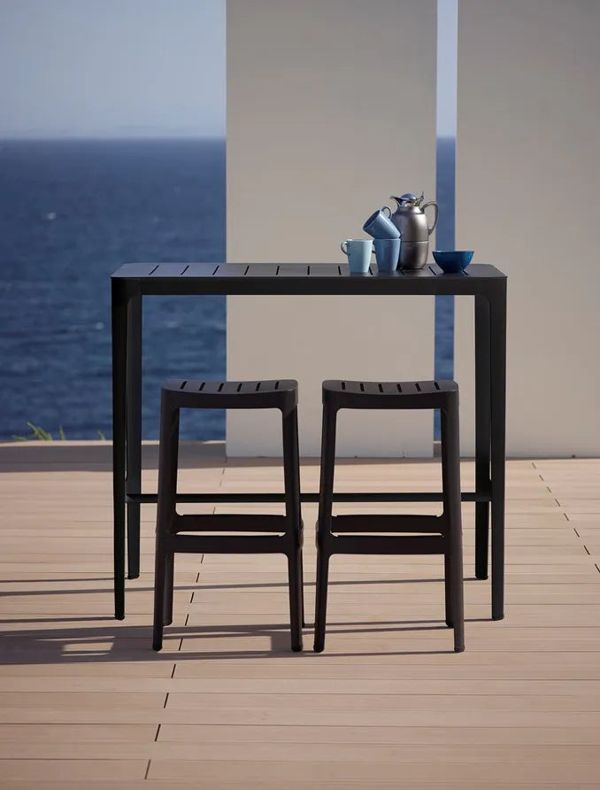 Dette nye og elegante minimalistiske barbord med en højde på 105 cm er designet af danske designere Hee Welling og Gudmundur Ludvik for Cane-line. Barbordet er produceret i laserskåret aluminium, bøjet og svejset sammen, simpelt og raffineret og kan blandes med både indendørs og udendørs indretning. Barbordet er produceret i aluminium med en holdbar udendørs pulver lakering i hvid, Ral 9002. Bordet kræver minimal vedligehold og rengøring. Cut bar bordet er et stærkt valg til et uformelt område, hvor man mødes eller derhjemme på terrassen, hvor man kan nyde noget helt anderledes.
