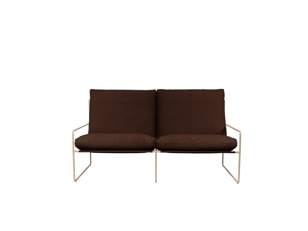 Skab en rolig, luksuriøs loungefølelse under åben himmel med Desert 2 personers outdoor sofa fra Ferm Living. Her får du en udendørs sofa, der føles lige så indbydende som dine bedste indendørsmøbler, men som er skabt til livet på terrassen, altanen eller i haven. Det lette, elegante stel giver et grafisk udtryk, mens de bløde hynder inviterer til lange sommermorgener med kaffe, eftermiddage med en god bog og aftener, hvor snakken fortsætter længe efter solen er gået ned.