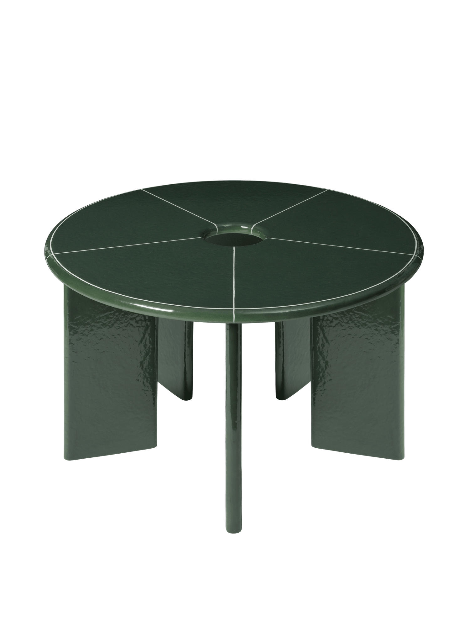 Bordet er fremstillet i slidstærk glasfiberarmeret beton, som gør det velegnet til både indendørs og udendørs brug. Den centrale åbning i bordpladen er designet til en parasol, så du nemt kan skabe skygge på solrige dage uden at gå på kompromis med helhedsindtrykket. Farven Dark Green tilfører dybde og karakter og spiller flot sammen med naturmaterialer som træ, sten, flet og tekstiler. Deya er et statement møbel, der kombinerer robusthed med en rolig elegance, og som er skabt til at blive brugt sæson efter sæson.