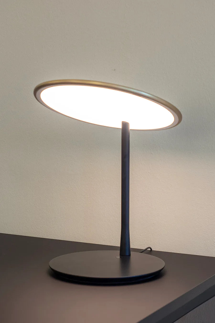 Disc bordlampen er simpel og elegant. Skærmen er flad og slank - deraf navnet Disc. Bordlampen har integreret LED, der udsender et blødt, varmt og jævnt lys.