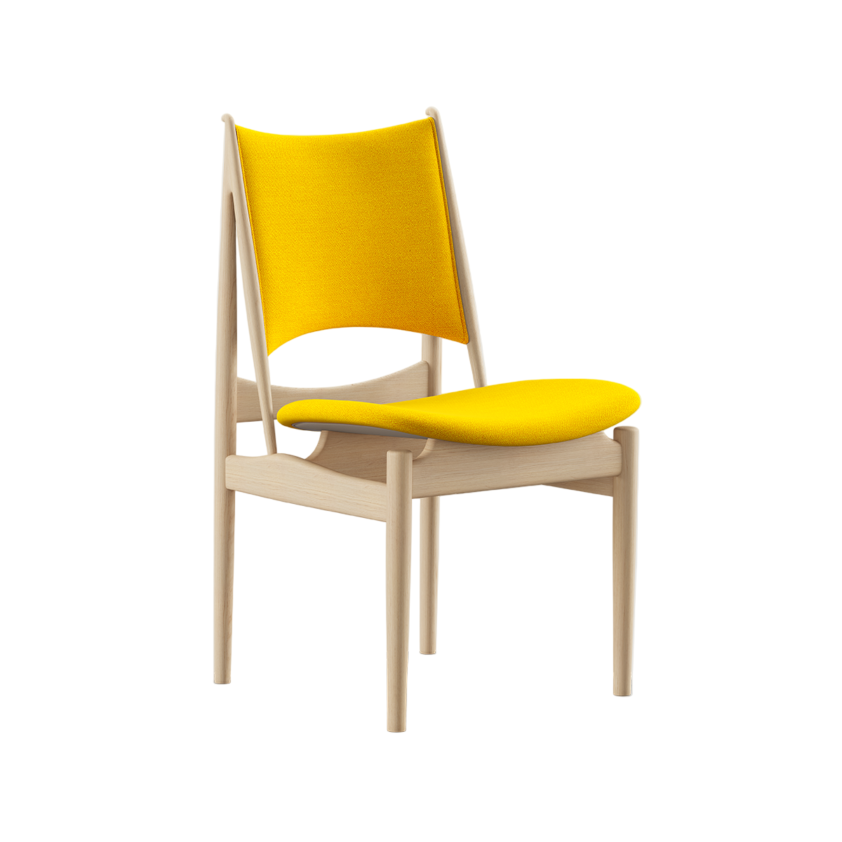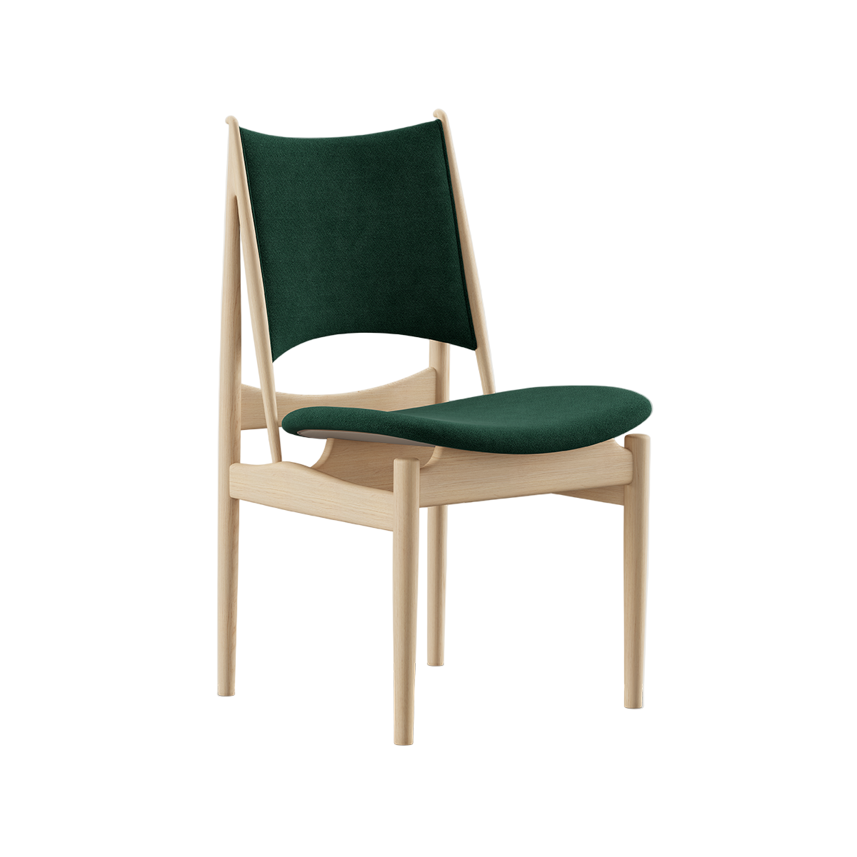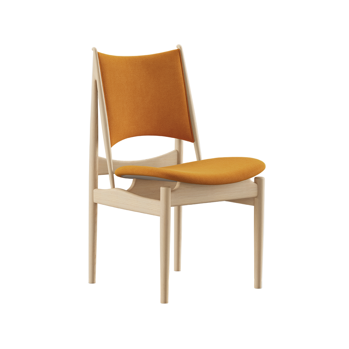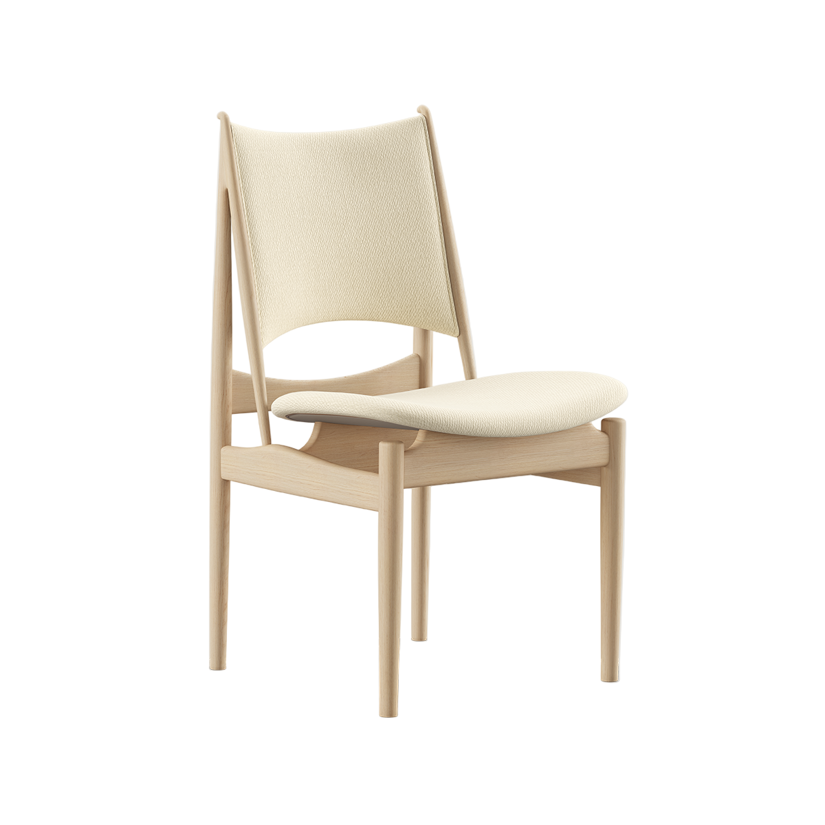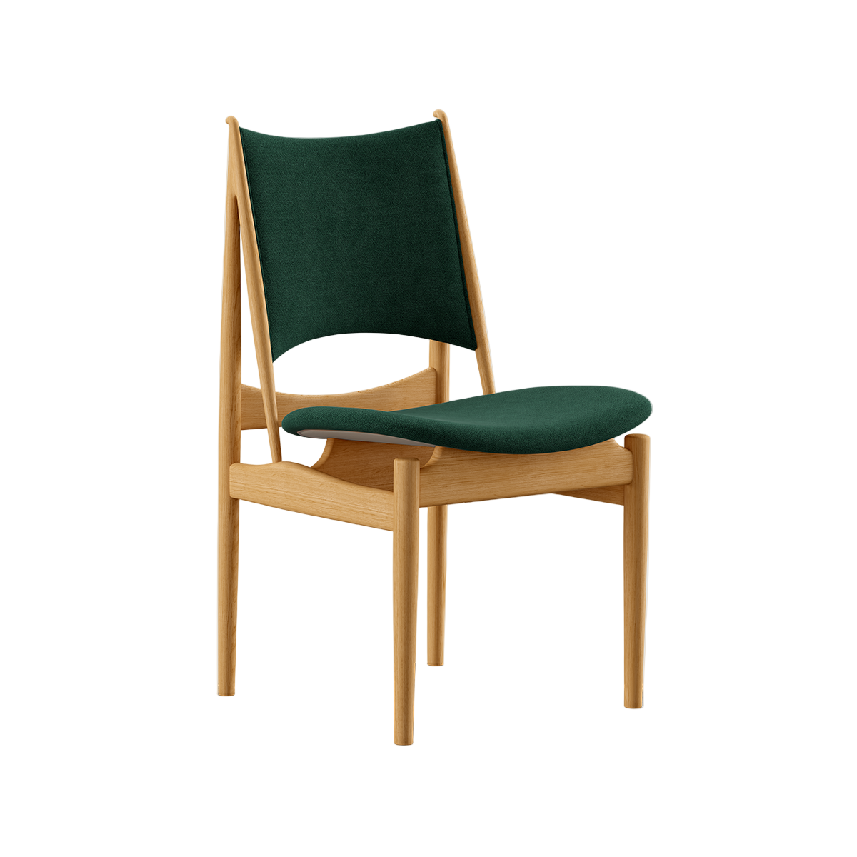 Egypterstolen i valnød forener Finn Juhls skulpturelle formsprog med en forfinet lethed, der næsten får stolen til at svæve omkring bordet. De elegante horn på ryggen, den svungne ramme og den bløde håndpolstring skaber et indbydende udtryk, som både er raffineret og afslappet. Designet blev vist første gang i 1949 og produceres i dag med samme kompromisløse håndværk i Danmark, så du får et ikon, der både tåler hverdagen og hæver rummet med karakter.
