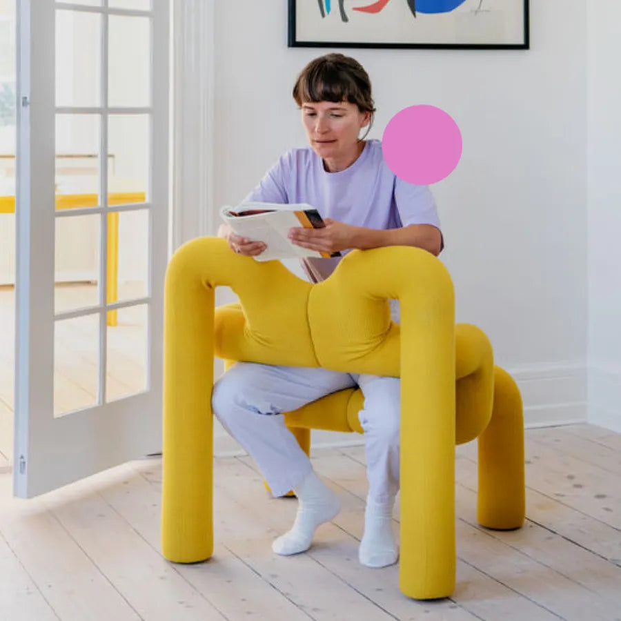 Ekstrem stolen i Gentle 2 tekstilet fra Kvadrat. Ekstrem fra Varier er en meget karakteristisk og skulpturel stol, med smukke organiske former. Stolen fungerer ikke kun som siddemøbel, men er også en iøjefaldende skulptur til stuen. Lænestolen er har en høj siddekomfort, og giver dig muligheden for at sidde i mange forskellige ergonomiske positioner.