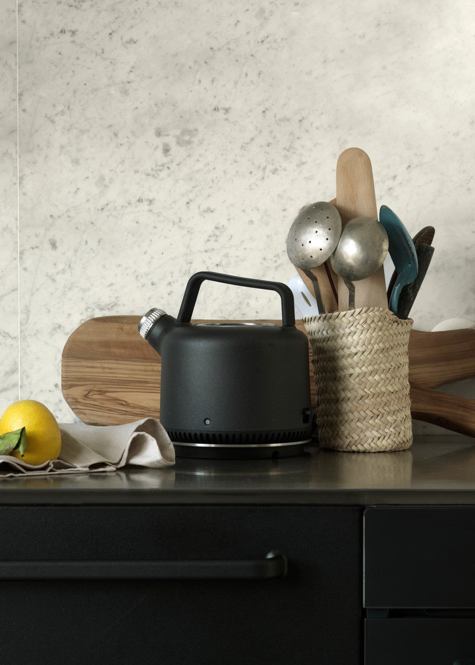 Vipp elkedlen er et essentielt redskab til køkkenet. Med en solid pulverlakeret overflade, skridsikre gummidetaljer og et udtageligt filter og tud, er den elektriske elkedel en funktionel tilføjelse til ethvert køkken. Materiale: Rustfrit stål, pulverlakeret rustfrit stål, silikone, stofbeklædt ledning. Mål: Højde: 21 cm Diameter: 17,5 cm Kapacitet: 1 liter. Watt: 1500 W. Vægt: 2 kg. inkl. base. Model: 50104EU.
