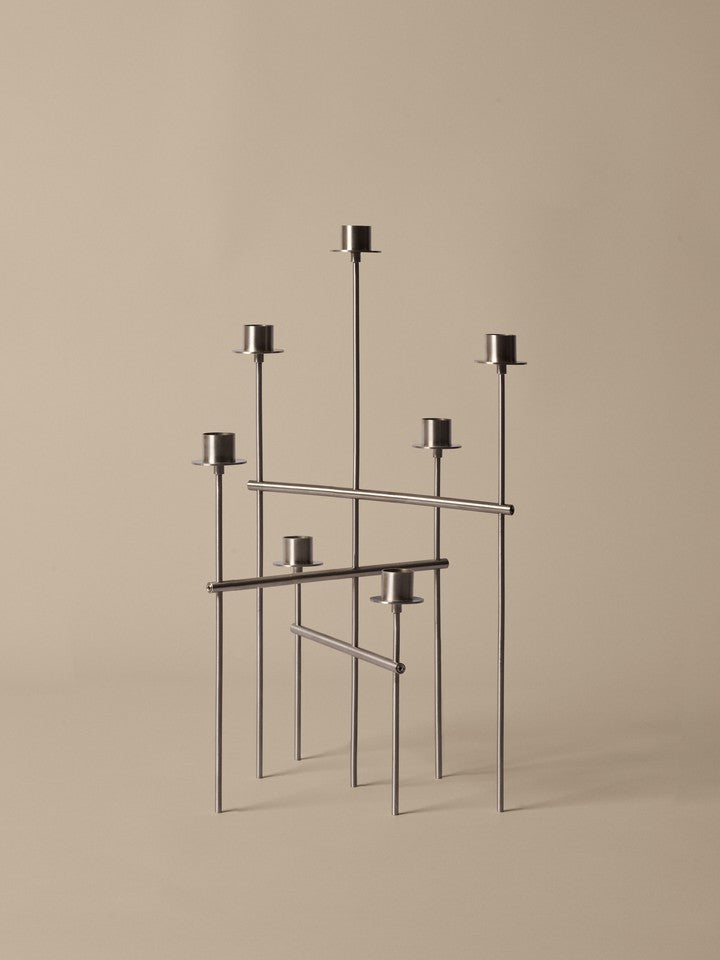 Elysia Candelabra fra Ferm Living er et skulpturelt midtpunkt til dit bord eller vindueskarm, hvor enkelhed møder elegance. Lysestagen er udført i børstet rustfrit stål, hvilket giver et raffineret udtryk med et moderne touch, der nemt indgår i både klassiske og minimalistiske interiører. Med plads til fire stearinlys skaber den en varm og stemningsfuld atmosfære, perfekt til hyggelige middage eller som dekorativ detalje i hverdagen. Elysia kombinerer skandinavisk funktionalitet med en tidløs æstetik, der gør den til et varigt designobjekt.