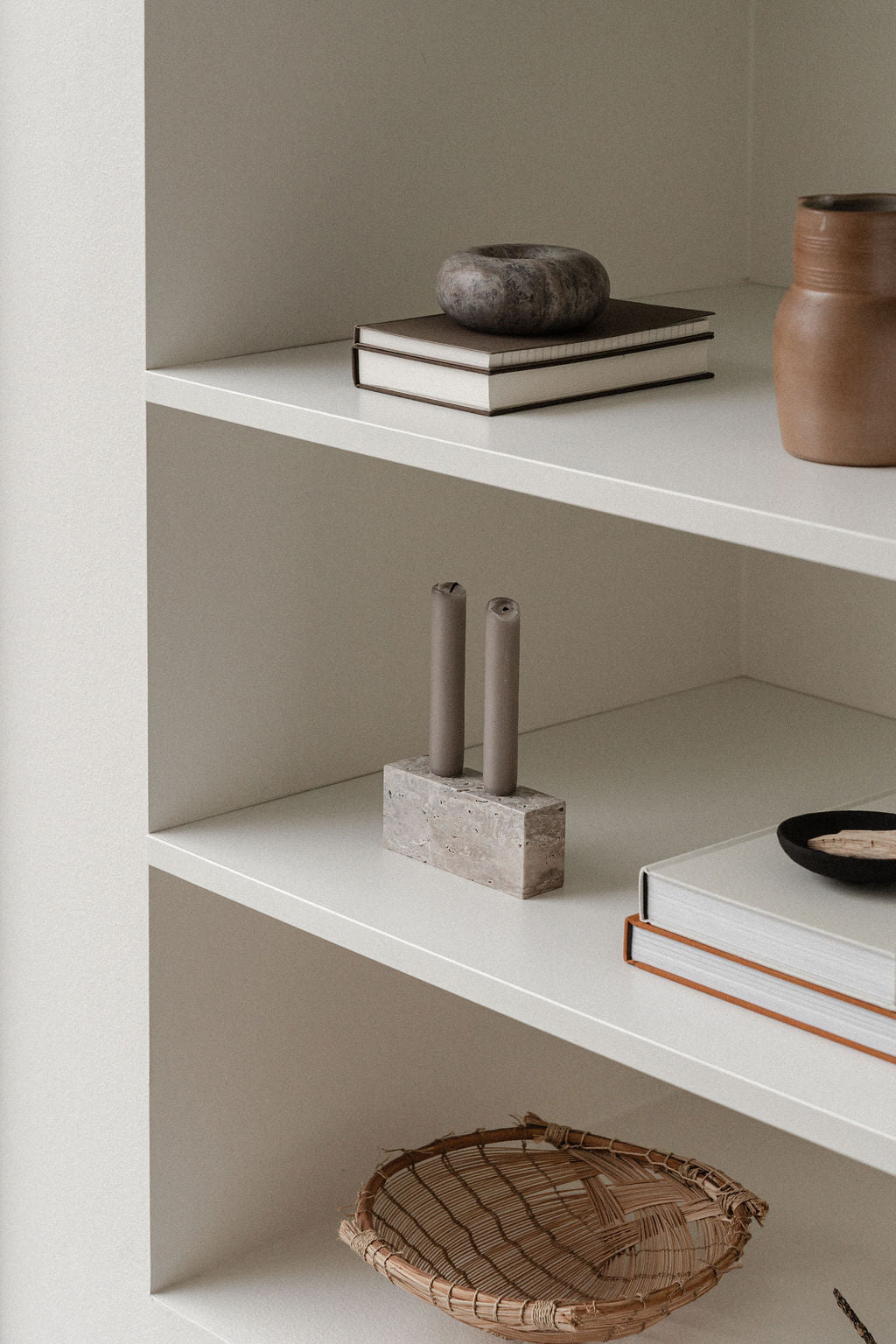 Epode Lysestage 14 cm, travertin silver fra Wabi Sabi Nordic