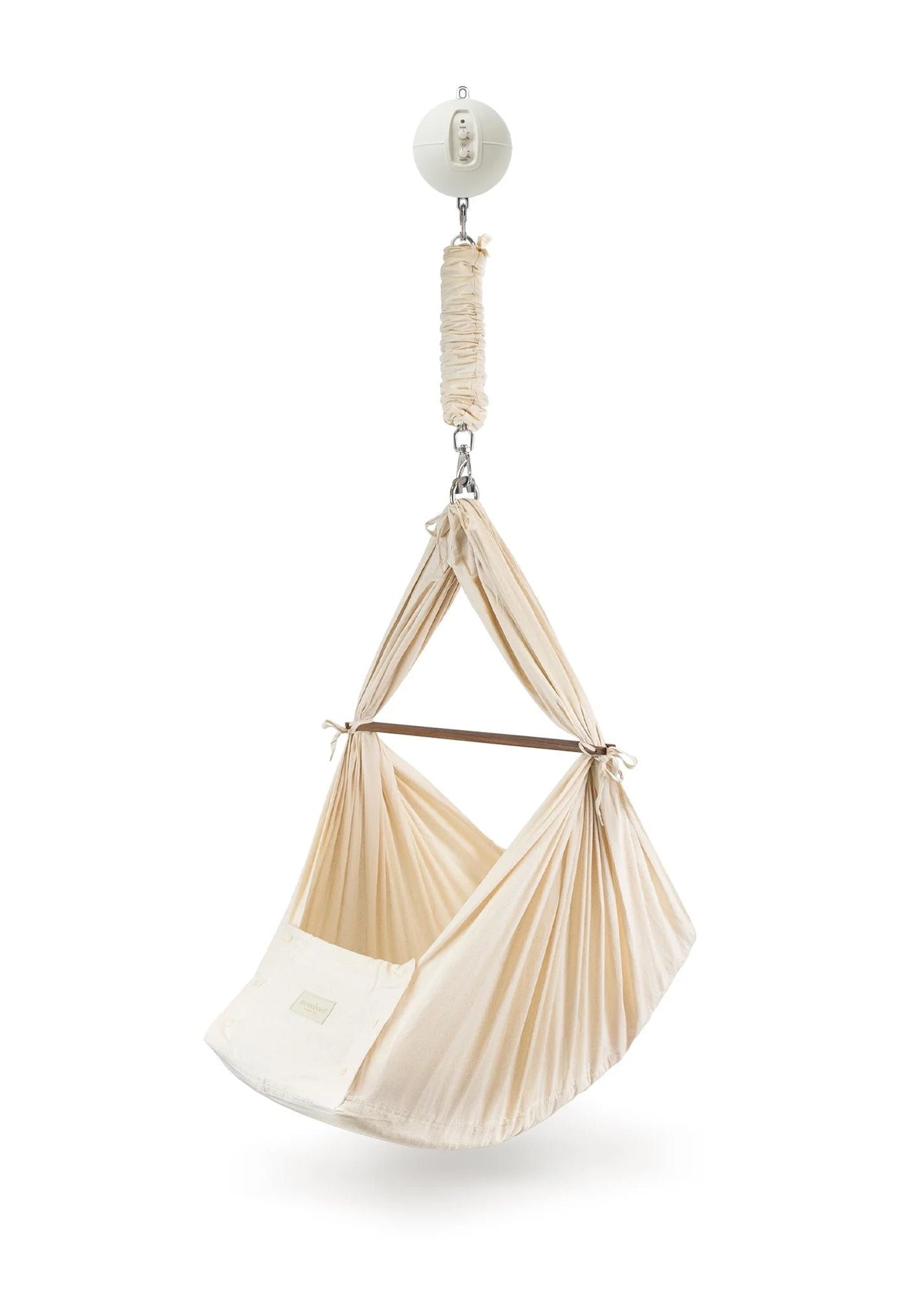 Din baby finder trøst i at blive vugget i dine arme, men slyngevuggen og motoren sørger for, at du også kan få en tiltrængt pause. Den lydsvage Vuggemotor Connect Basic er en hjælpende hånd til at holde gang i de beroligende bevægelser, som hjælper dine børn med at falde i søvn. Slyngevuggen giver også en blød og beskyttende atmosfære, hvor lyde dæmpes og skarpt lys skjules, hvilket giver de optimale betingelser for en rolig og dyb søvn.