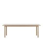 ESSENTIAL OAK i farven Mushroom er spisebordet der samler rummet om en rolig base. Den matte linoleumsoverflade i Mushroom føles blød og indbydende, og den varme eg rammer bordpladen ind med et rent, møbelklassisk udtryk. Med længde på 220 centimeter og bredde på 90 centimeter får du en generøs arbejdsflade der giver luft omkring hver kuvert uden at føles dominerende i rummet. Proportionerne er afstemt, så bordet opleves stabilt og let på samme tid, og den lakerede træfinish gør det enkelt at holde overfladerne pæne i hverdagen. Linoleum er et naturligt materiale baseret på linolie og harpiks som står flot mod træets struktur og dæmper genskin ved brug af stearinlys og arbejdslamper. ESSENTIAL OAK er skabt til at bære både måltider, lektier og kreative pauser, og farvetonen Mushroom balancerer smukt mellem varm beige og grå, så bordet glider elegant ind i både lyse nordiske interiører og mere stemningsfulde paletter.