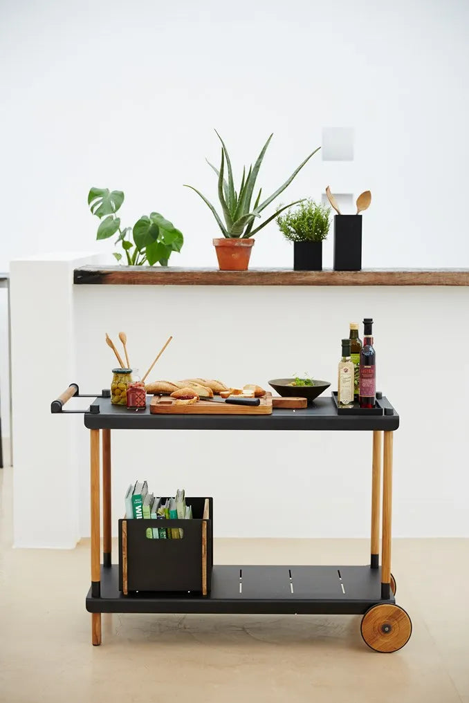 Frame er fremstillet i vejrbestandig pulverlakeret aluminium. Frame reolen fås i antracit grå og hvid med fødder og rumdelere i WWF®-certificeret teaktræ.