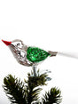 Tilføj et strejf af klassisk elegance til din julepyntssamling med denne smukke sølv og grønne fugl. Fuglens hale er spundet af glas og de smukke detaljer bidrager med nostalgisk charme til juletræet eller en dekorativ troldegren. Fuglen er let at placere med sin klemme, hvilket gør den både praktisk og stilfuld.