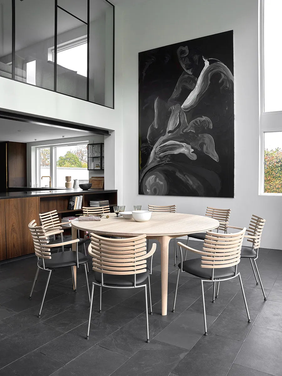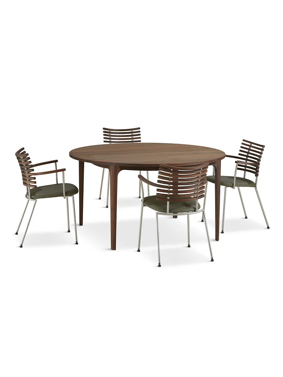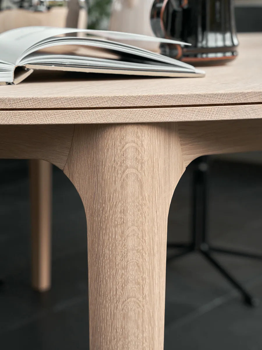 Bordet er kreeret med udtræk i midten. Tillægsplader kommer, ligesom RO spisebordet, i massivt træ.