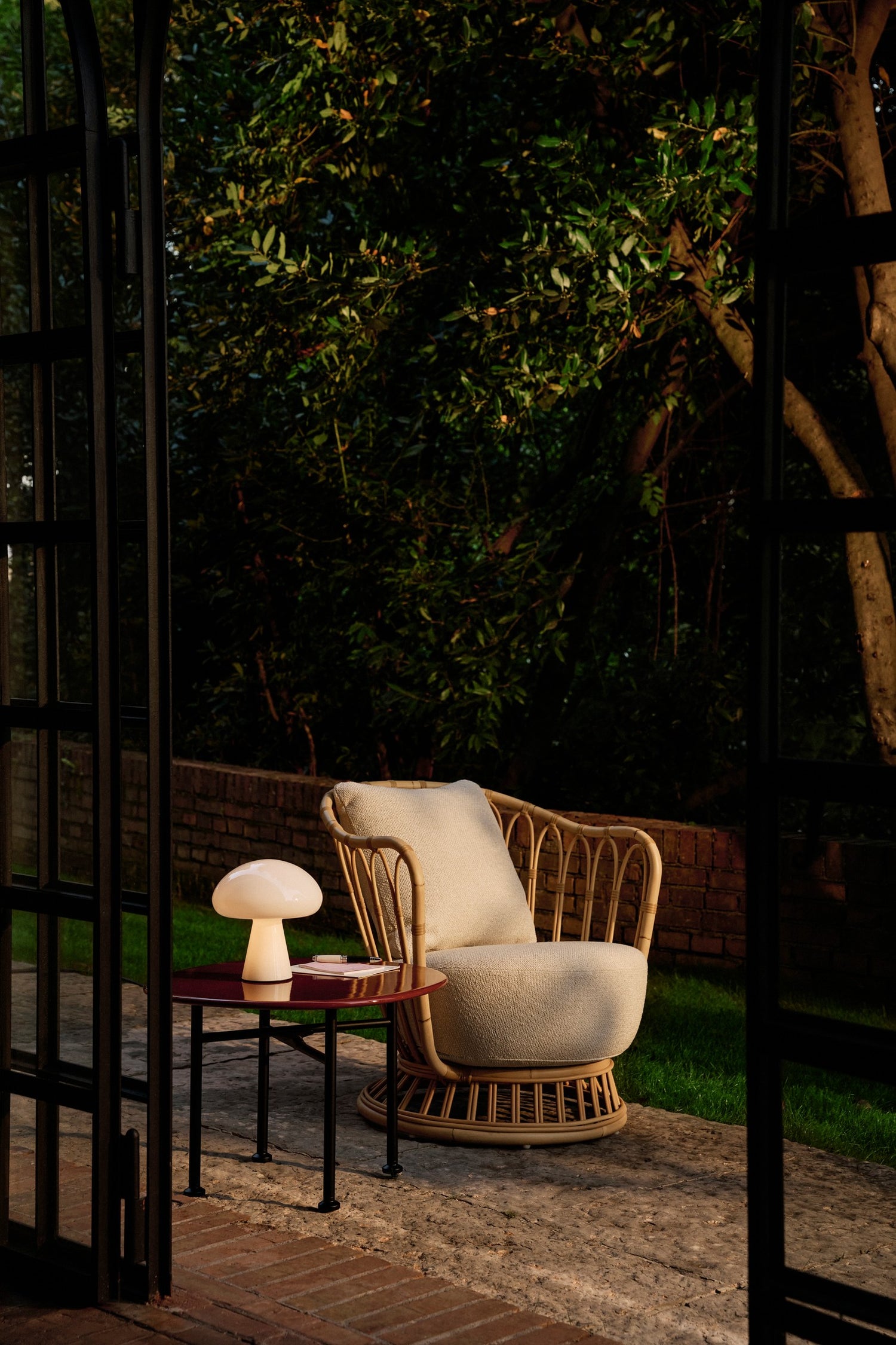 Grace Outdoor Lounge Chair fra GUBI er en elegant og organisk loungestol designet af Tove Kindt-Larsen i 1936. Inspireret af naturens bløde kurver og materialer, især de småsten og drivtømmer hun samlede på strandene i det nordlige Danmark, skabte Kindt-Larsen en stol med bløde, indbydende former. Den oprindelige Grace Lounge Chair blev håndvævet i rattan af indonesiske håndværkere, hvilket gav stolen en naturlig robusthed og lang levetid. I den nye udgave til udendørs brug er rattan erstattet med et syntetisk materiale bestående af pulverlakeret aluminium og polyethylenfibre, hvilket bevarer stolens fleksibilitet og tilføjer ekstra stabilitet. Denne opdatering sikrer også øget modstandsdygtighed over for vejr og UV-stråler, hvilket gør Grace Outdoor Lounge Chair ideel til terrasser, altaner og haver. Stolen kommer i fire forskellige farvekombinationer.