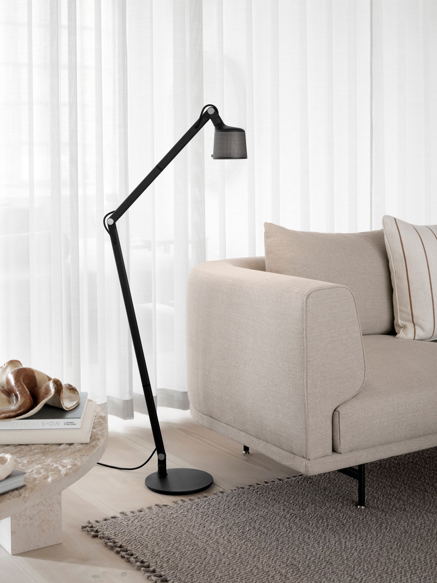 Vipp gulvlampen er en læselampe til stuen. Lampen er udstyret med analoge detaljer såsom en justerbar arm til fokuseret lys, og en perforeret lampeskærm med mat glas, der kaster et blødt lys. Vægt: 5,5 kg. Materiale: Pulverlakeret aluminium og - stål, rustfrit stål, silikone, glas, stofbeklædt ledning. Lyskilde: Kompatibel med pærer i energiklasse A++ - E, E14 max 15W. For maksimal ydeevne anbefales en LED lys kilde, P45 type, 470lm og 2700K. Dæmpning er muligt hvis lampen udstyres med en dæmpbar pære og en passende kontakt på ledning eller væg. Model: VIPP525.