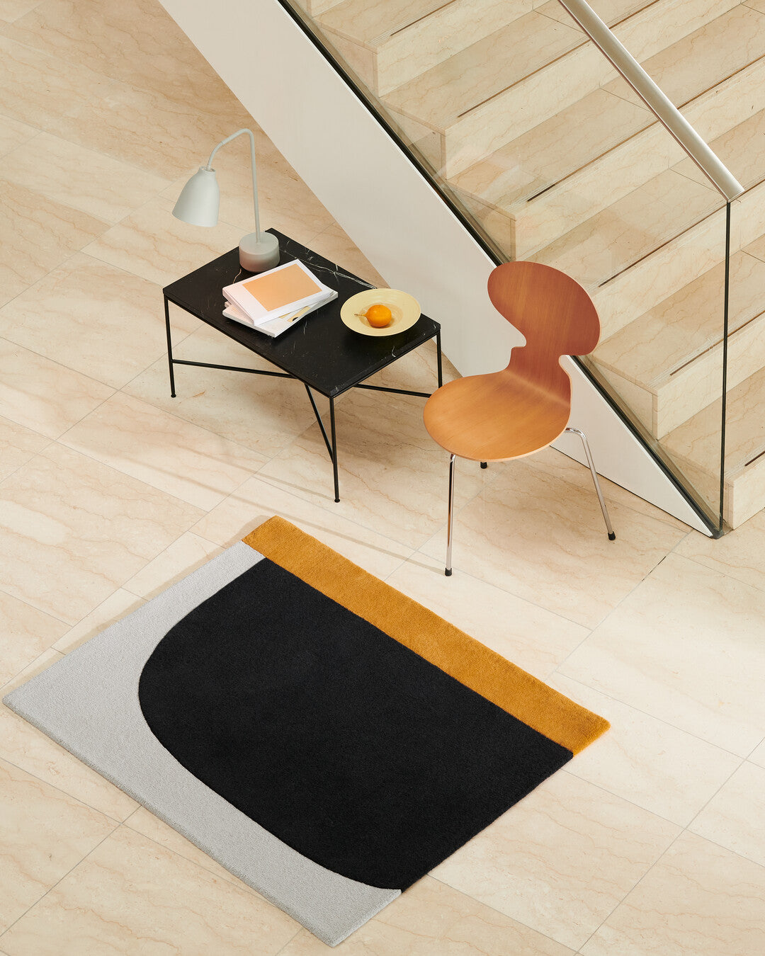 Rugs fra Fritz Hansen er en serie designet af Cecilie Manz med inspiration fra designerens blyantstegninger med geometriske udklip, lag på lag papirklip og farveblyanter, men også fra det spil af former der skabes, når solen skinner ind gennem vinduerne i Manz’ designstudie. Variationer i luvens højde giver tæpperne et diskret tredimensionelt udtryk og gør dem dragende interessante.