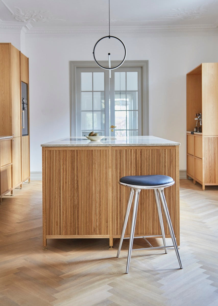 Designet er skabt af Space Copenhagen og er i dag anerkendt som en moderne dansk klassiker. Sædet er nænsomt formet, så du sidder stabilt og behageligt, og proportionerne er afbalancerede, så stolen føles elegant uden at stjæle plads visuelt. Den høje sædehøjde på 74 cm gør modellen ideel til barborde og højere bordløsninger, hvor du ønsker den rigtige højde, en afslappet siddestilling og et udtryk, der passer til både moderne og mere klassiske indretninger.