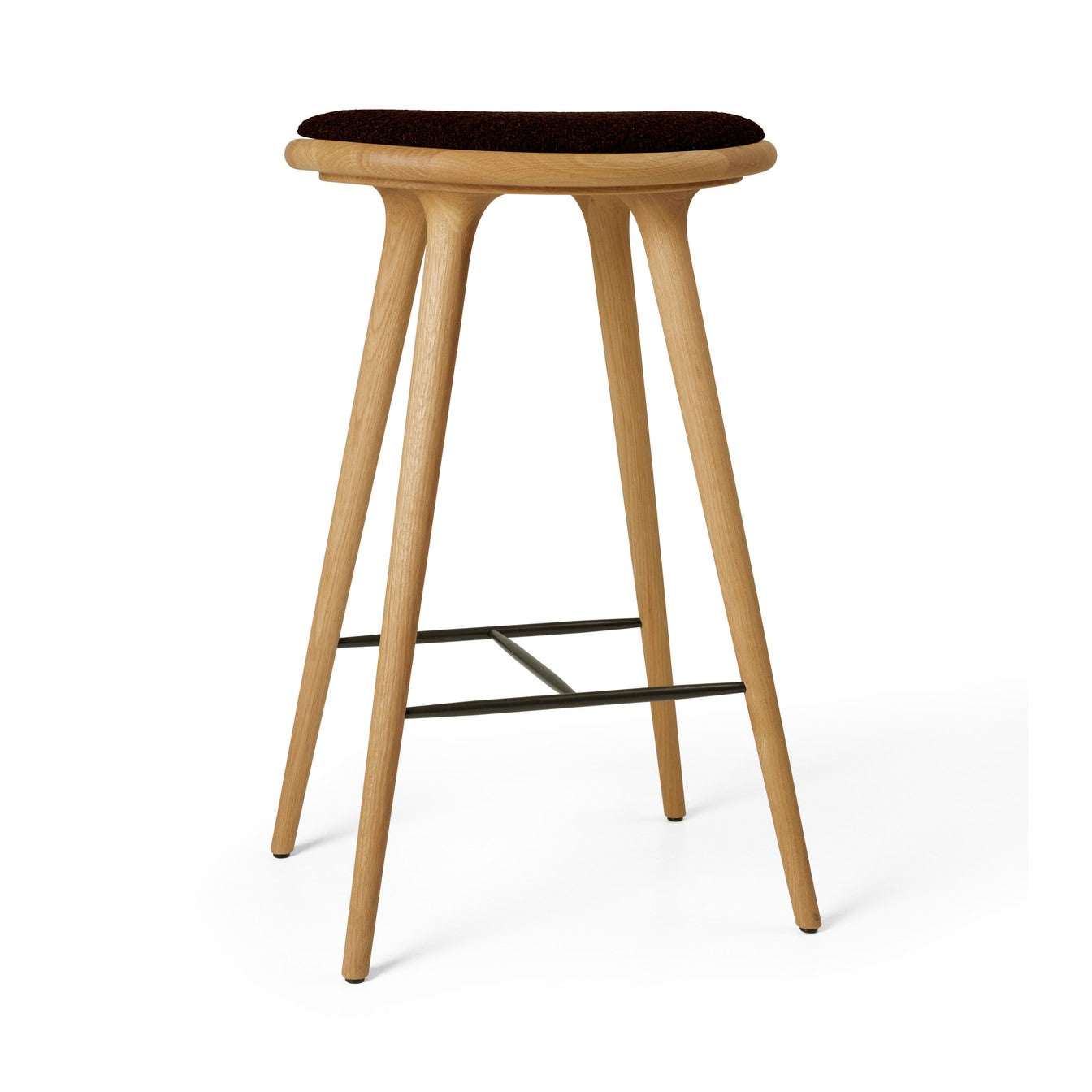 Mater High Stool i brun bøg med Nuance Dark Brown læder er den slags barstol, der får et køkkenalrum eller en hjemmebar til at føles mere gennemtænkt fra første øjekast. Den varme, brune trætone giver rummet dybde og ro, mens det mørkebrune Sørensen læder tilfører en eksklusiv, taktil komfort, som kun bliver smukkere med tiden. Resultatet er en høj barstol med et organisk, let udtryk og en robusthed, der fungerer lige godt i private hjem som i mere travle miljøer.