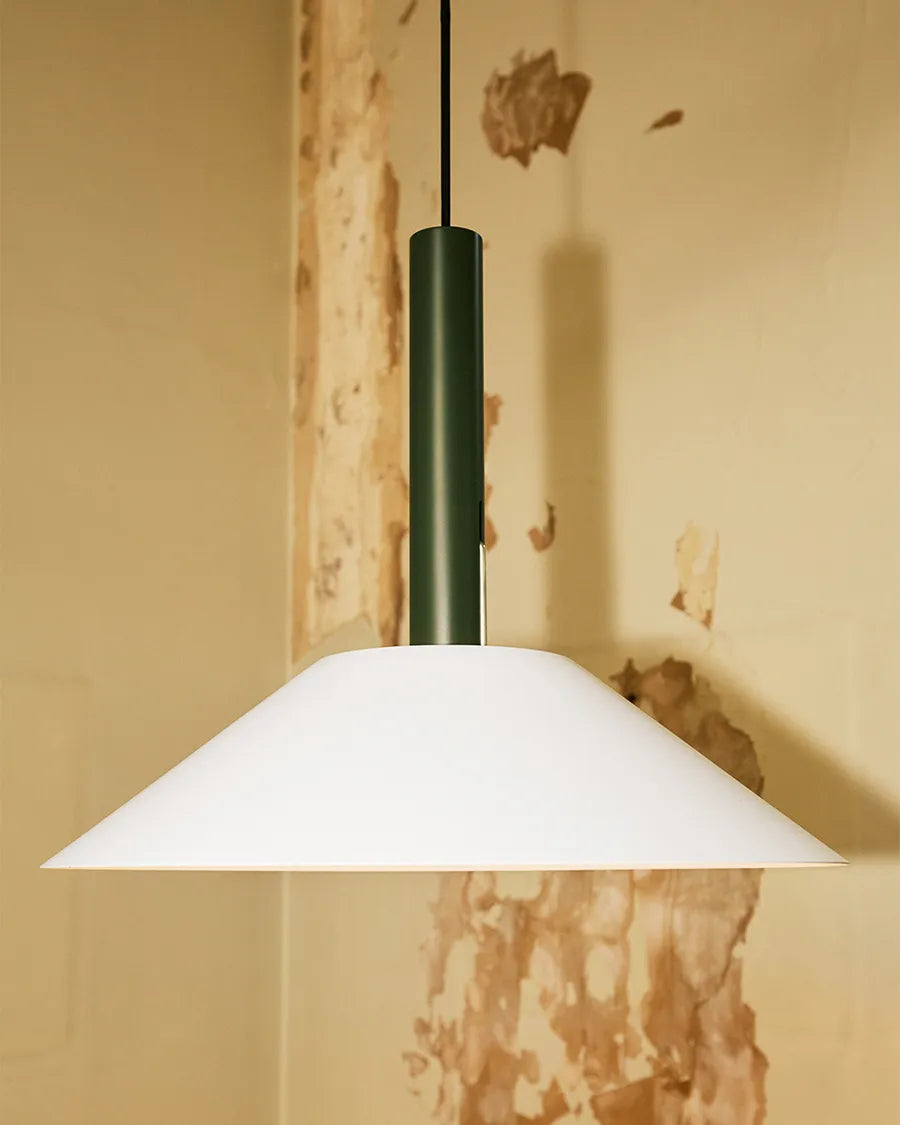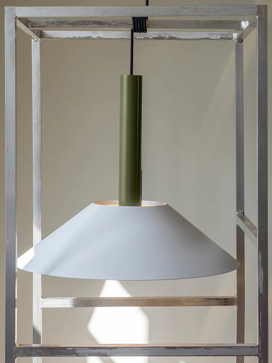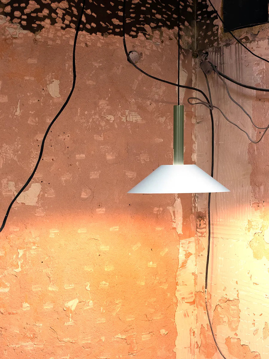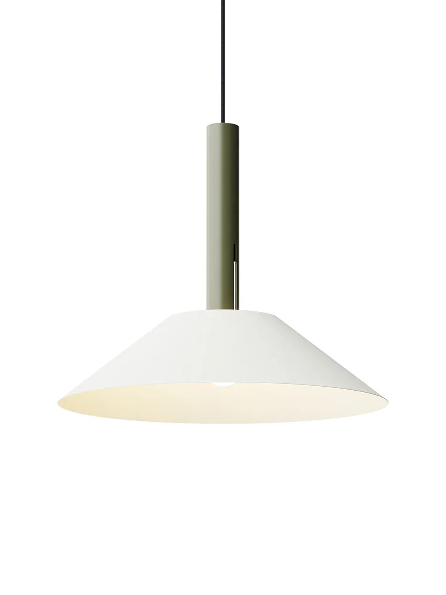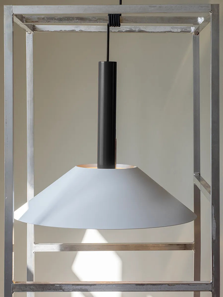 Hook pendel er kendetegnet ved to simple geometriske former samt en krog. De to geometriske former er en bred kegle til lampeskærm og en cylinder til armaturet. Skærmen er ophængt i en enkelt krog af rustfrit stål - deraf navnet Hook.