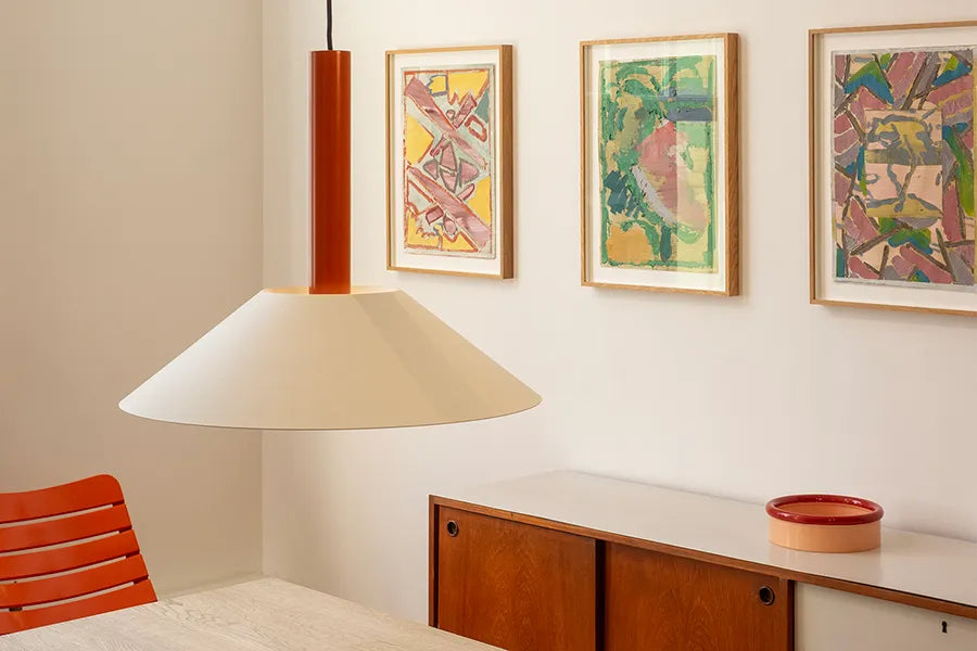 Alexandra Gerber står bag designet. Lampen er ideel at hænge over spisebordet eller i midten af stuen.