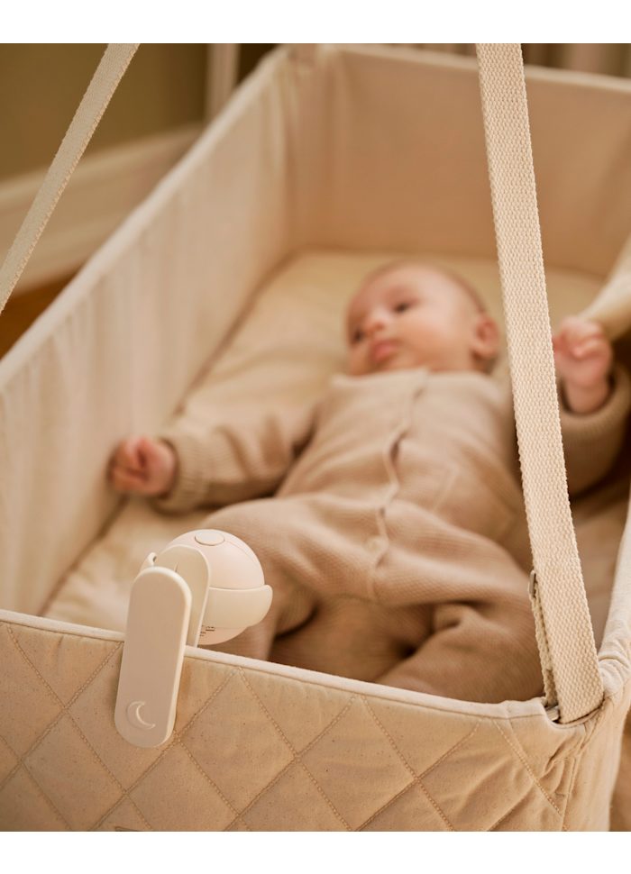 Moonboon Intelligent babyalarm med kamera er skabt til forældre der ønsker ro i maven og et smukt, skandinavisk udtryk i hjemmet. Den kompakte alarm er mindre end en tennisbold og kan klipses fast på tremmeseng, vugge eller barnevogn, eller monteres på væg med et diskret beslag som kan tilkøbes. Med det indbyggede kamera får du et klart overblik både dag og nat takket være HD kvalitet og infrarødt nattesyn, så du kan se dit barn uden at forstyrre søvnen. Den intelligente AI grådregistrering filtrerer baggrundsstøj fra og lader dig kun reagere på det der betyder noget. Hundegøen, tv i stuen og andre lyde sorteres fra, mens gråd, smålyde og uro registreres præcist. Samtidig måler en indbygget temperatursensor miljøet omkring barnet, så du kan optimere søvnmiljøet i hverdagen.