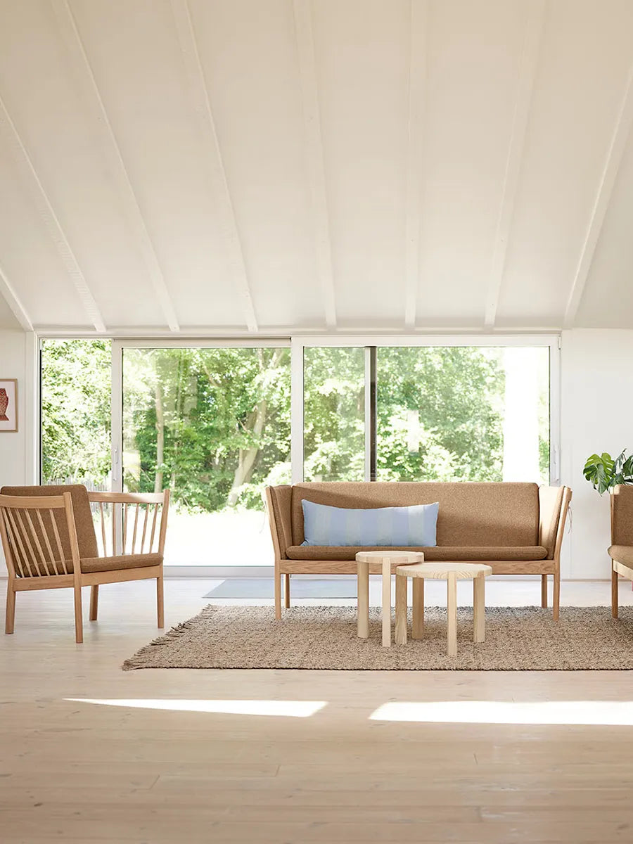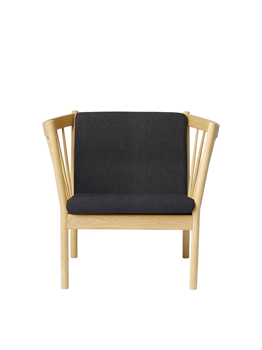 J146 Tremmelænestolen er designet af Erik Ole Jørgensen for FDB Møbler. Med de runde former og det lækre egetræ er J146 tremmestolen et typisk dansk design ikon. Stolens design med de store armlæn inviterer til fordybelse og afslapning.